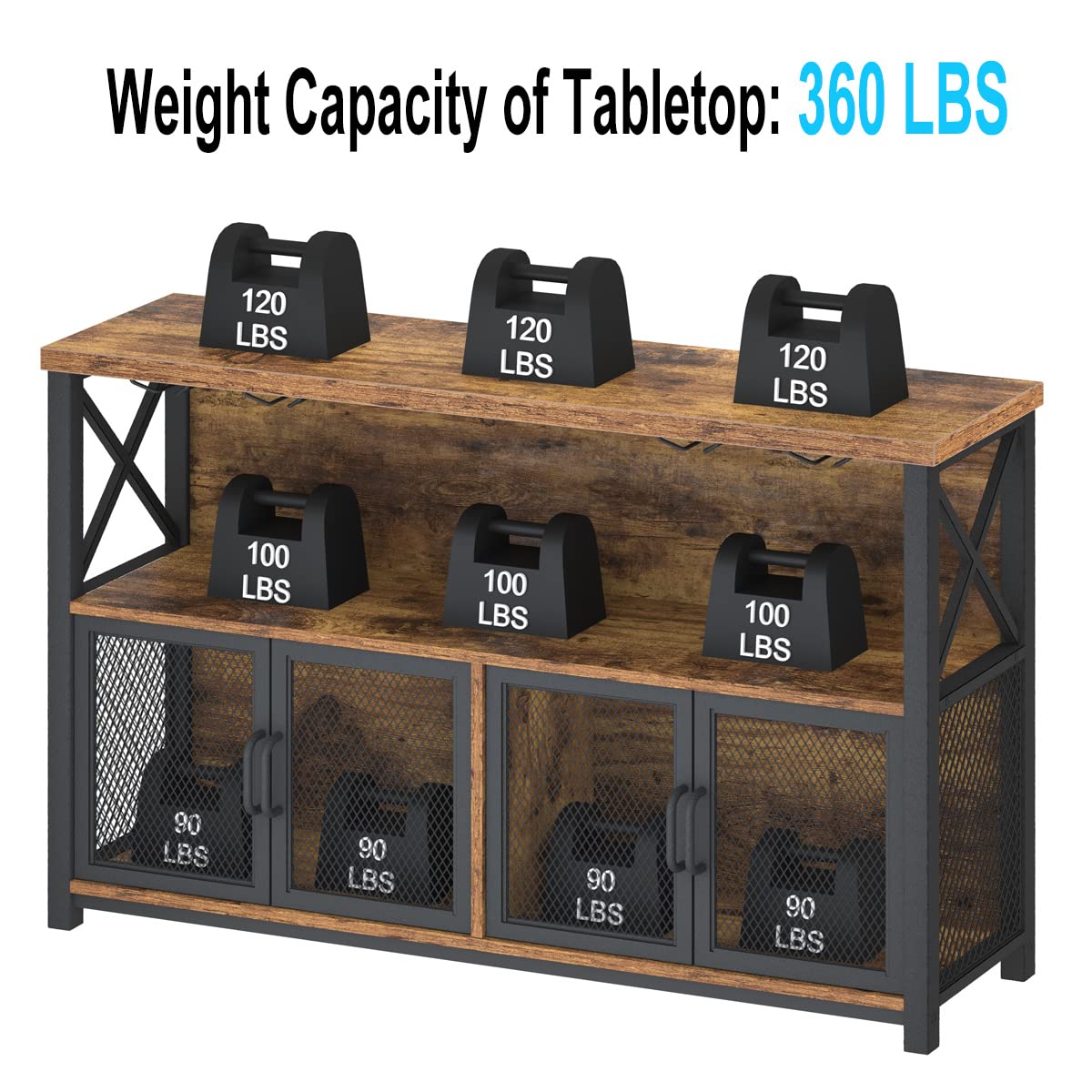 Rustic Brown Industrial Coffee Bar Cabinet with Wine Rack and Ample Storage