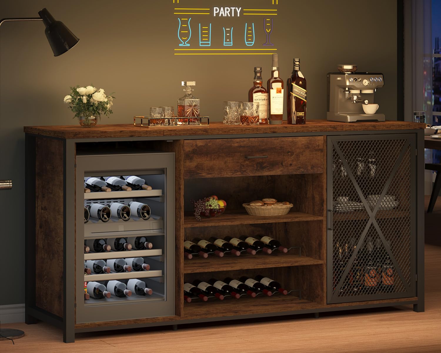 LVB Rustic Brown Large Bar Cabinet with Fridge Space and Storage Drawers