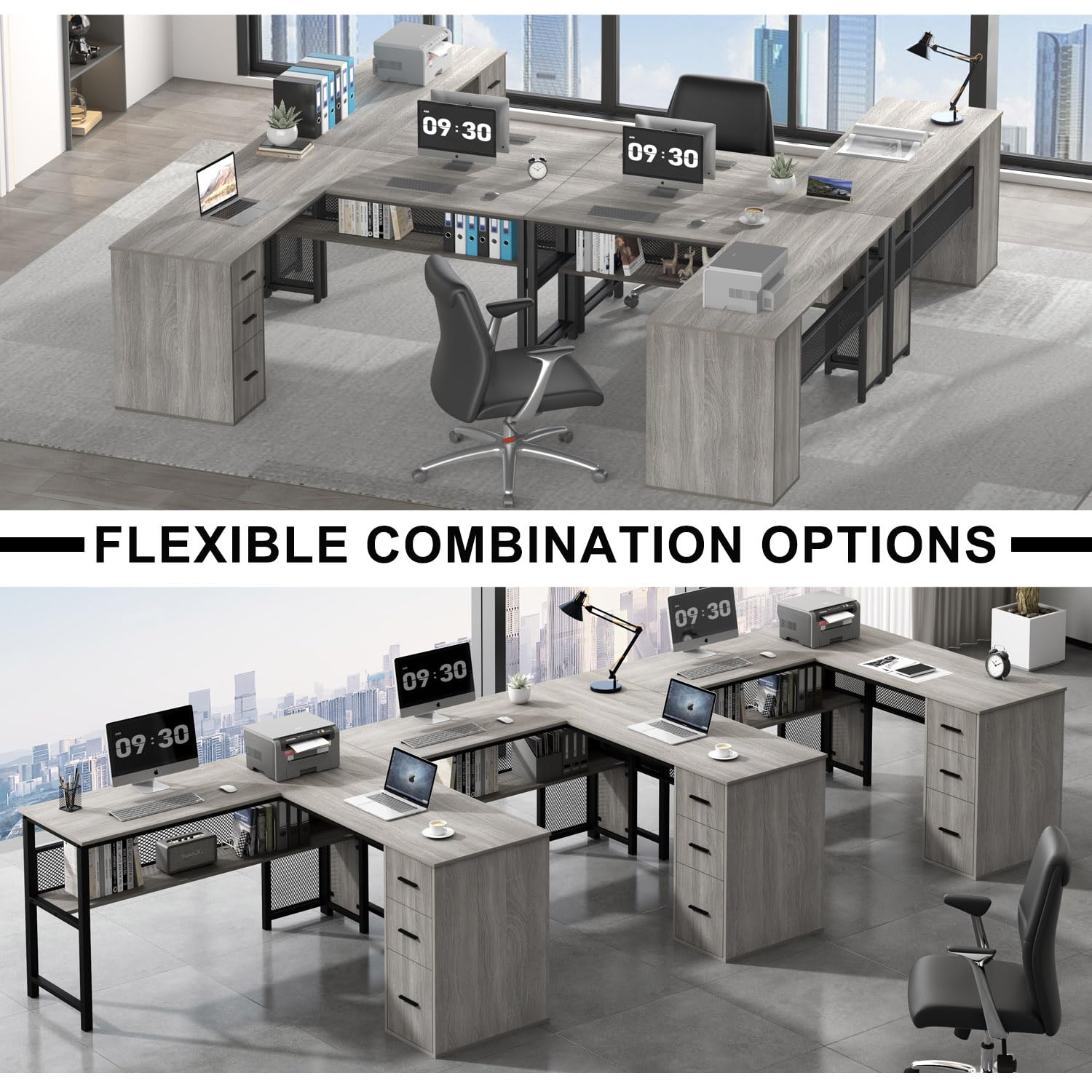 - Comfort and Ergonomics: The design of the large gray L-shaped home office desk often considers ergonomic principles, such as having chairs and desktop heights that are ergonomic to ensure you maintain a comfortable posture while working or studying, reducing neck and back pressure. With its ergonomic design, ample storage options, and spacious, flexible foot space, it enhances productivity and organization in any setting, making it the optimal choice for anyone seeking a stylish and functional workstation.