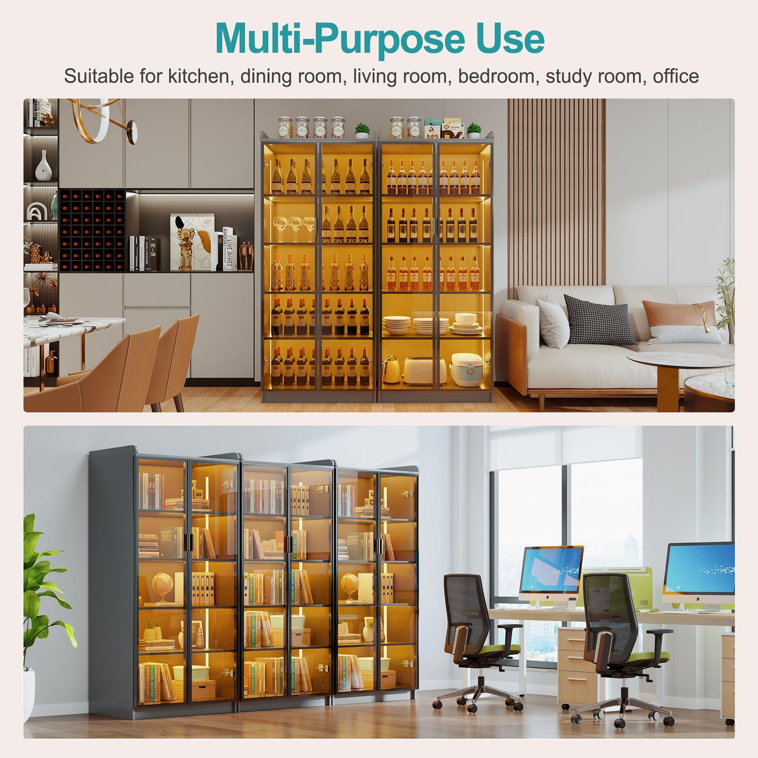 - ☕【Multi-Purpose and Multi-Scene】- This 66 inch china cabinet is perfect for use as a bookcase for studying or displaying collectibles in your living room. It's versatile enough to also serve as a kitchen pantry cabinet or sideboard buffet cabinet, to keep your belongings organized