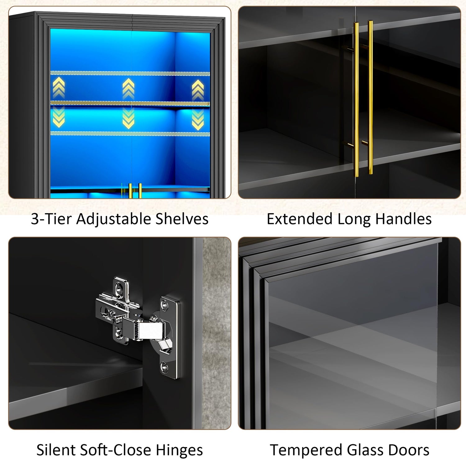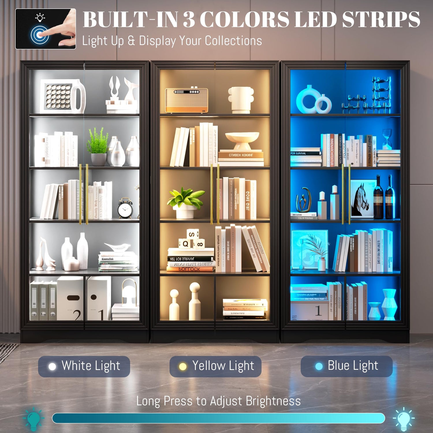 - Tempered Glass Door: The modern bookcase with doors design of the storage organizer showcase your treasures while protecting them from dust. Featuring shatter-resistant side panels for all-around protection, this display cabinet elevates your interior with its sophisticated design, creates a stunning focal point in any room