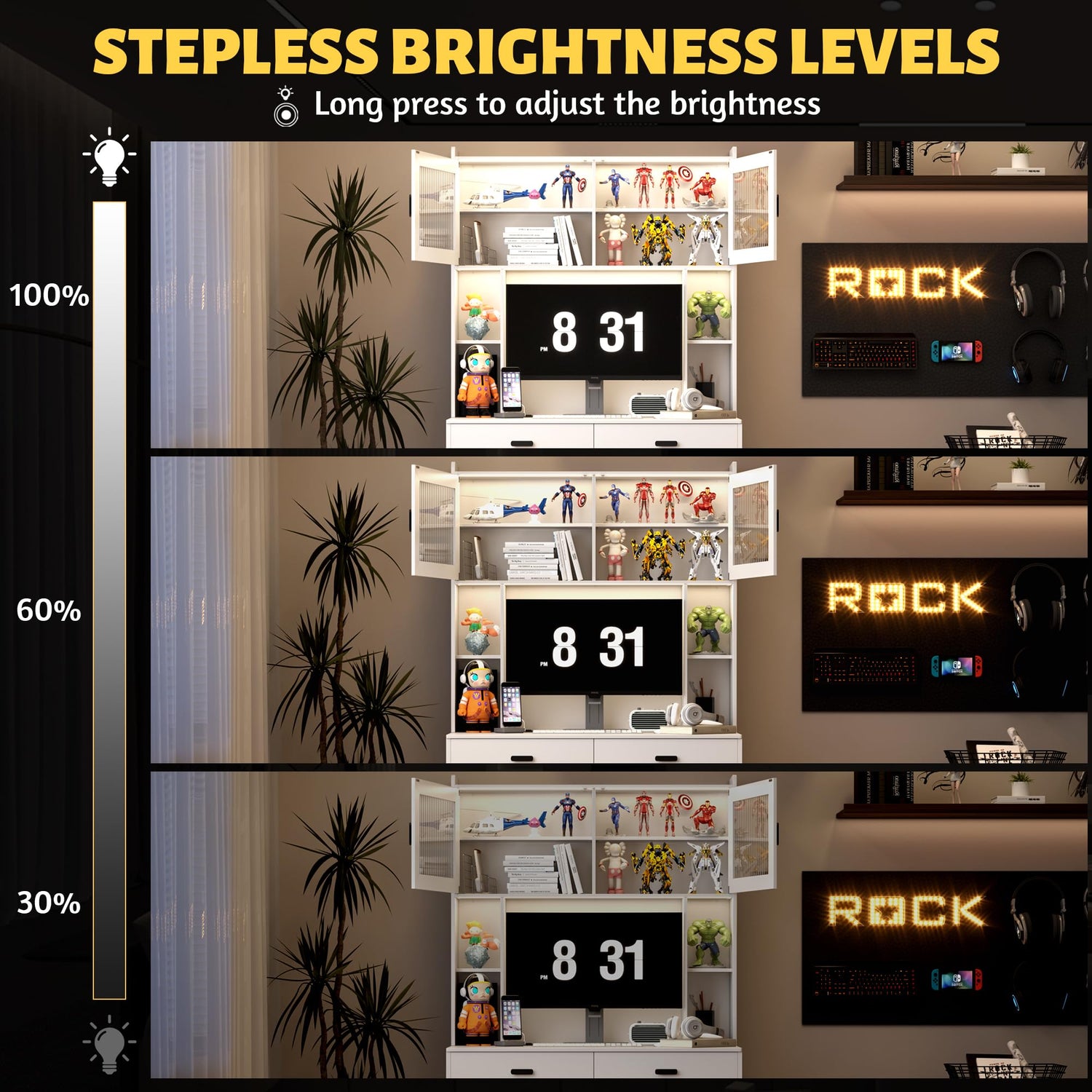 - [Modern Home Office Desk] - If you're in search of an attractive and practical computer / gaming / work desk with hutch, take a look at LVSOMT's latest 68" height desk. A spacious desk with LED lights and power sockets, ample storage, featuring 2 drawers, a top cabinet, and open storage shelves, this desk is designed to cater to various spatial needs, especially ideal for compact spaces.