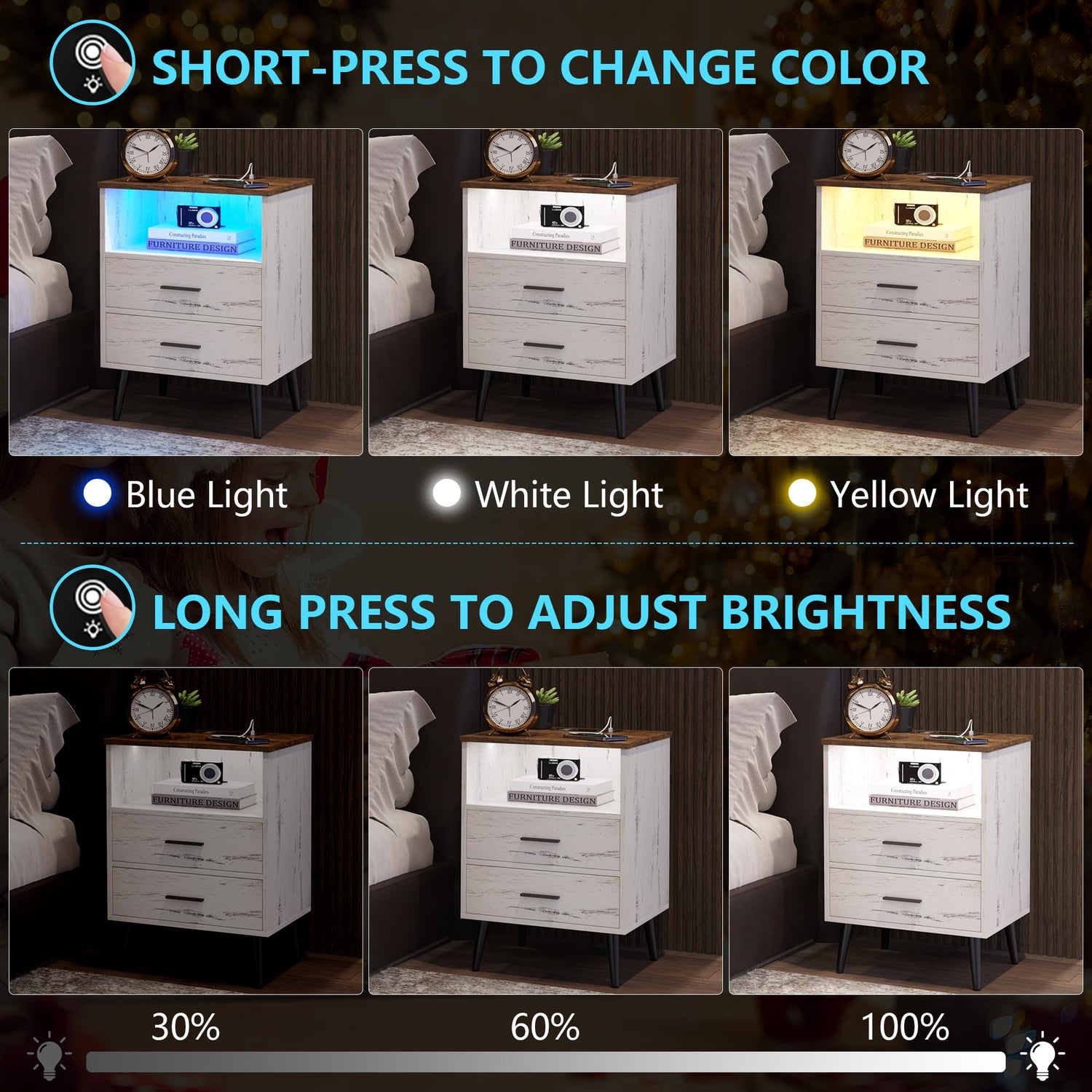 - ✔【Combination of Vintage and Modern】This Smart LED Nightstand antiqued aesthetic blends a wood white with the frosted surface for added charm. Elegant furniture perfectly for your office as storage cabinets, bedroom as nightstands, living room as sofa tables or coffee table. Besides, LED atmosphere lights will be the outstanding point in your home, catch everyone's eyes.