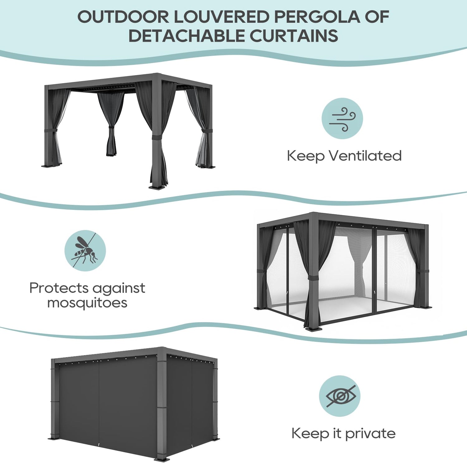 LVUYOYO Louvered Pergola 10' x 13', Outdoor Pergola with Adjustable Roof, Aluminum Frame Pergola with Curtains and Netting, Hardtop Metal Gazebo for Patio, Backyard, Garden, Deck (Black)
