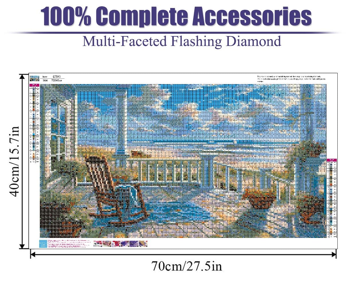 LWZAYS 5D Large Size Landscape Diamond Painting Kits for Adults, Beach Diamond Art Kits for Adults, DIY Full Drill Paintings with Diamonds Gem Art Crafts for Home Wall Decor 16x28 inch