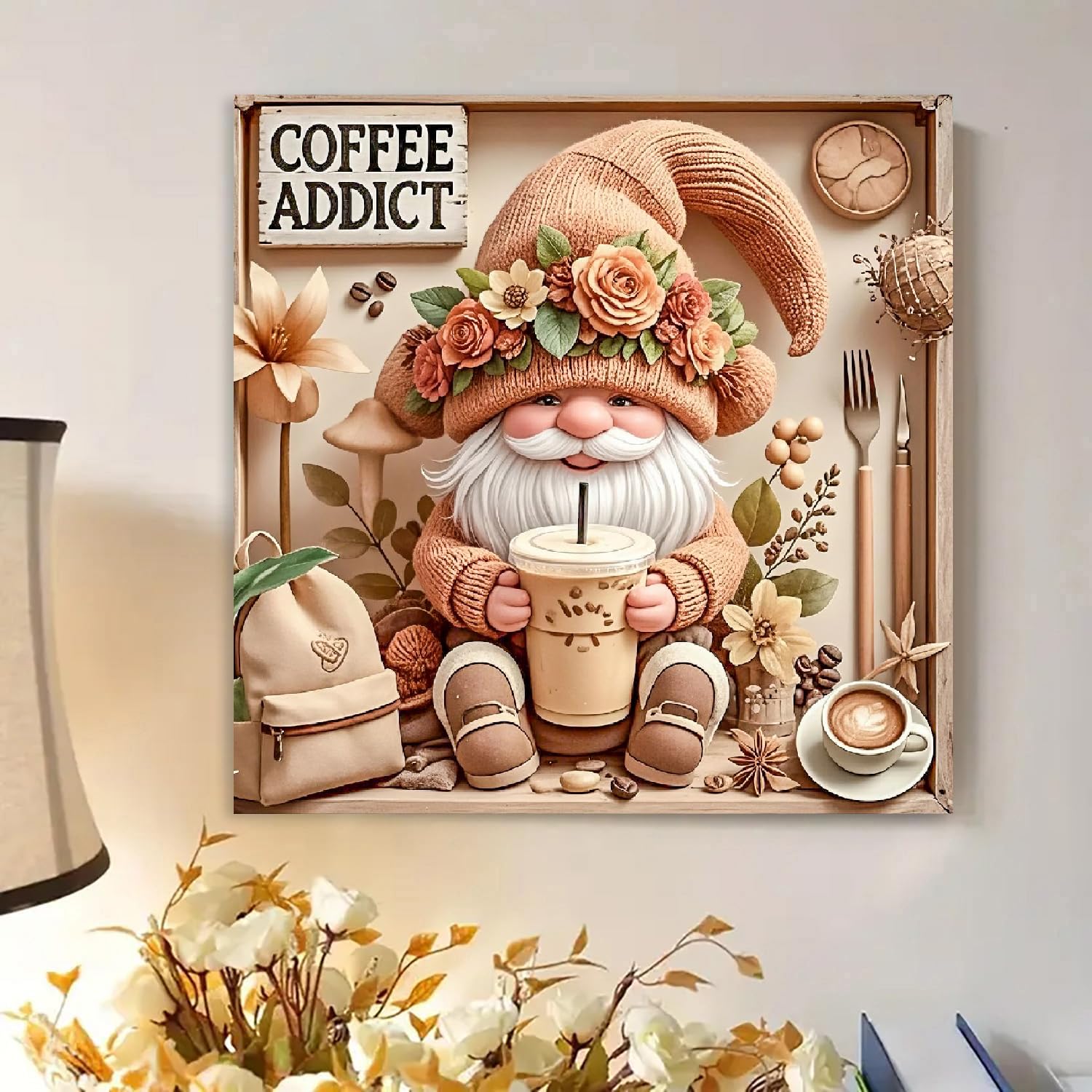 - Vibrant 5D Diamond Painting - Our 5D DIY Gnome Drinks Coffee design diamond art kits for adults is meticulously crafted to deliver unparalleled quality. Round gems cover the whole picture, making the picture more shinning and realistic, and the Diamond art kits come as a canvas with a sticky background that is protected by a plastic covering, the background is in good look, the letter symbols are high-definiton and easy to read
