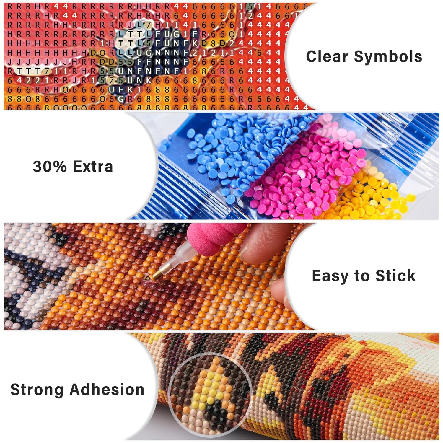 - HD Printed Canvas: There are clear numbering symbols and easy-to-follow instructions on diamond art kit with vivid colors, and beautiful images; The Canvas of the diamond painting kit is highly viscous without diamonds coming off easily