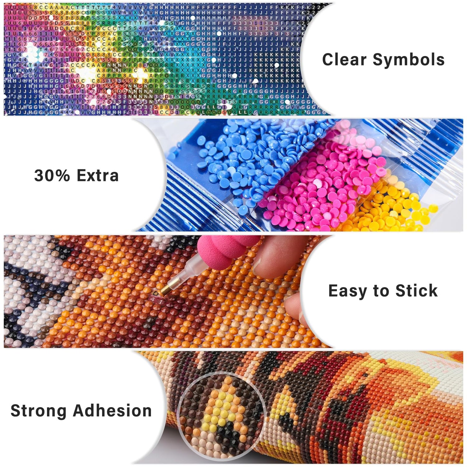 - All Tools in Need Offered: Package includes 1 x HD printed canvas, 1 x pen, 1 x tray, 1 x glue clay, 5 x sealed bags and enough colorful diamonds. An extra 30% beads are provided so that the diamond painting kits can be completed smoothly