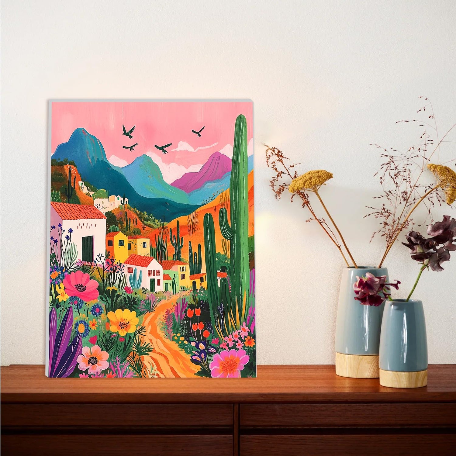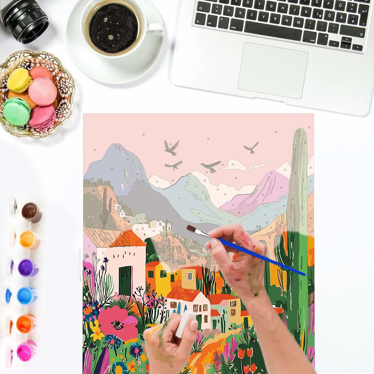 Lxmsja Mountains Landscape Paint by Numbers Kit for Adults, Cacti Acrylic Paint by Numbers for Adults Beginner, DIY Craft Supplies Oil Painting Kits for Home Wall Decor 12x16 inch (Framed)