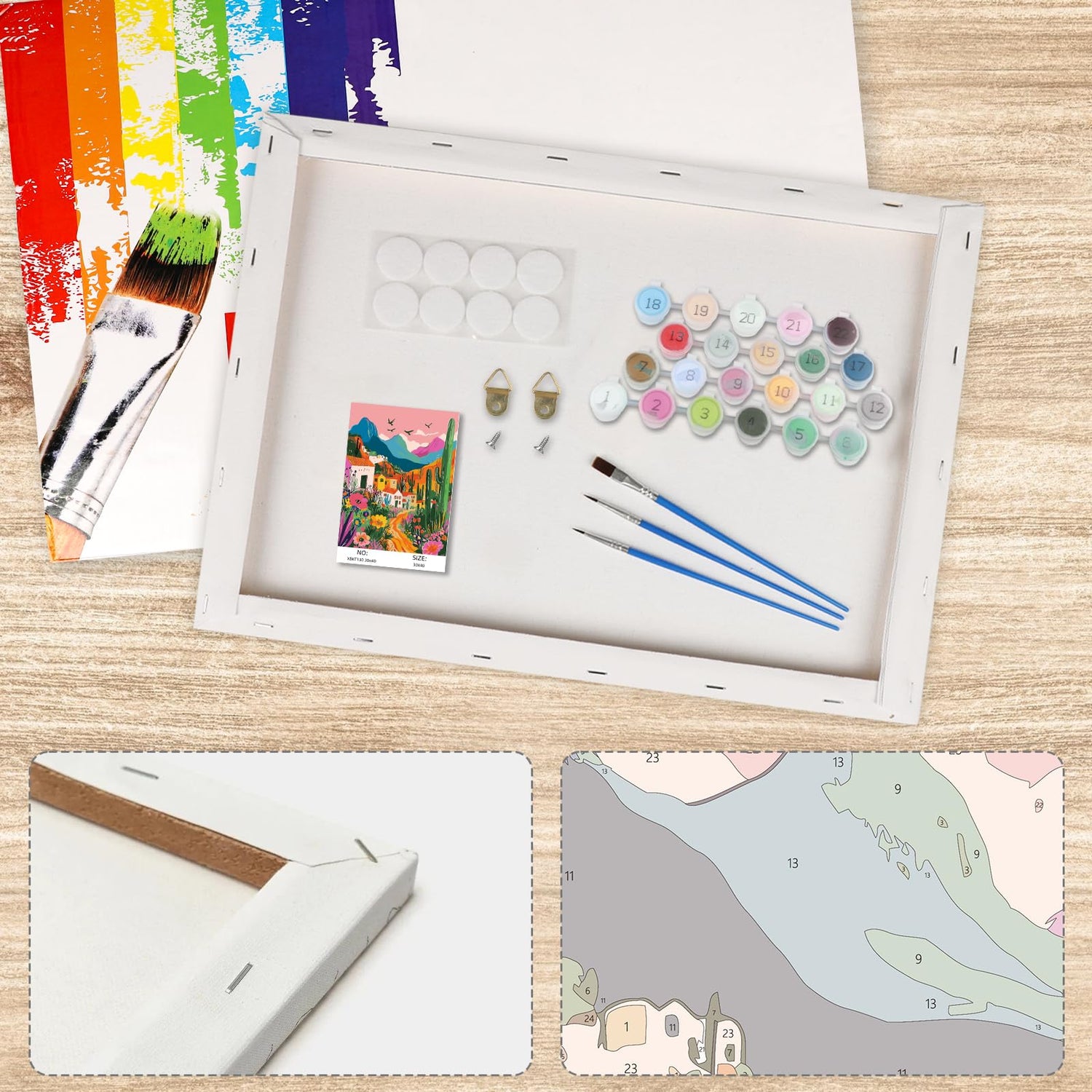 - HD Color Canvas: The paint by numbers kit for adults adopts high-definition color canvas. The number area is easier to distinguish and the paint is easier to adhere to which can prevent eyestrain