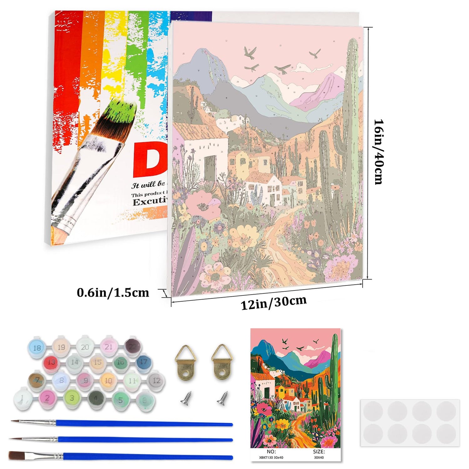 - Complete Tool Kit: The DIY paint by numbers kit for adults includes 3 different-size brushes, 1 pcs framed canvas, 1 set of matched acrylic paint colors, and hook nails. Open the package and you can start painting immediately