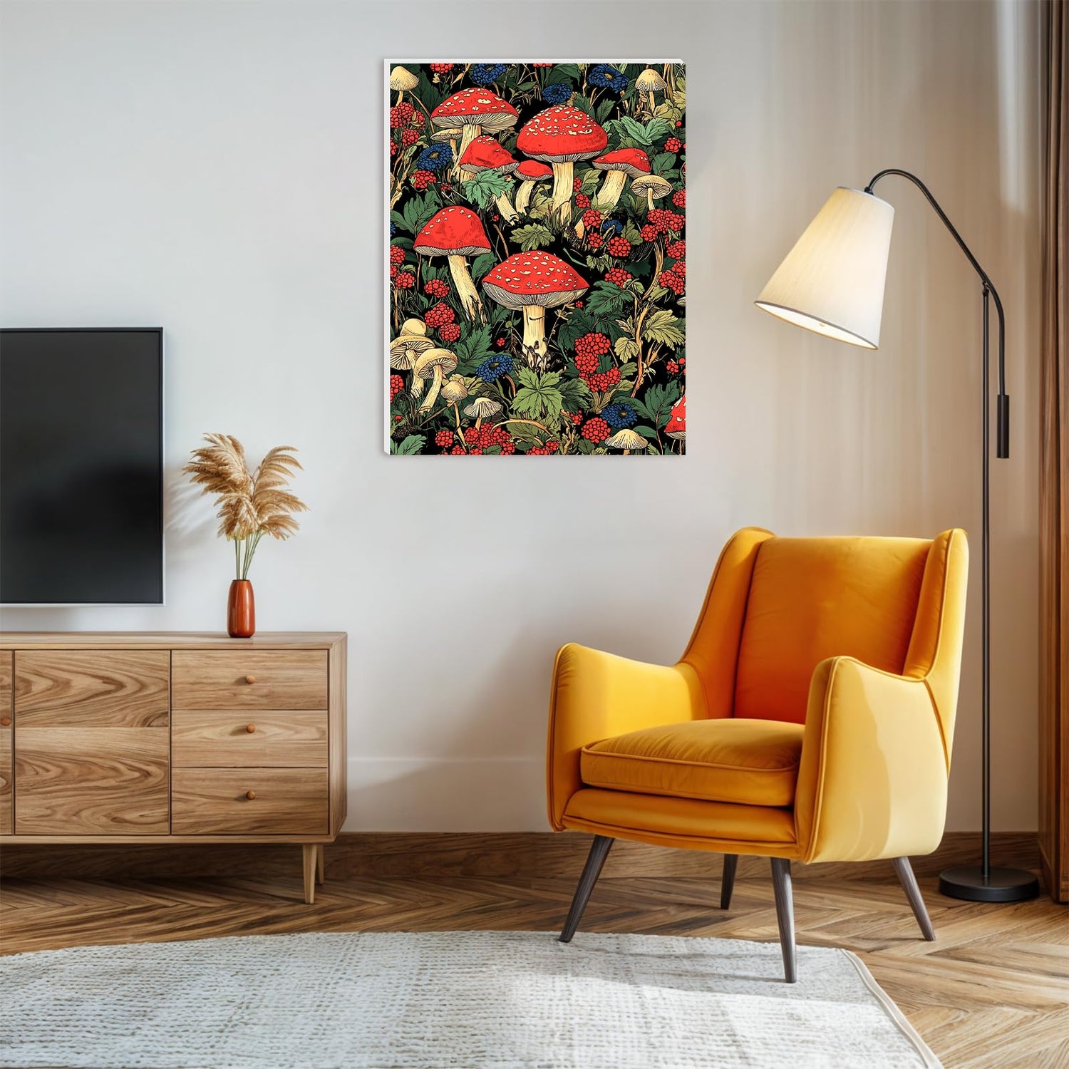 Lxmsja Red Mushroom Paint by Numbers Kit for Adults, Forest Acrylic Paint by Numbers for Adults Beginner, DIY Craft Supplies Oil Painting Kits for Home Wall Decor 12x16 inch (Framed)