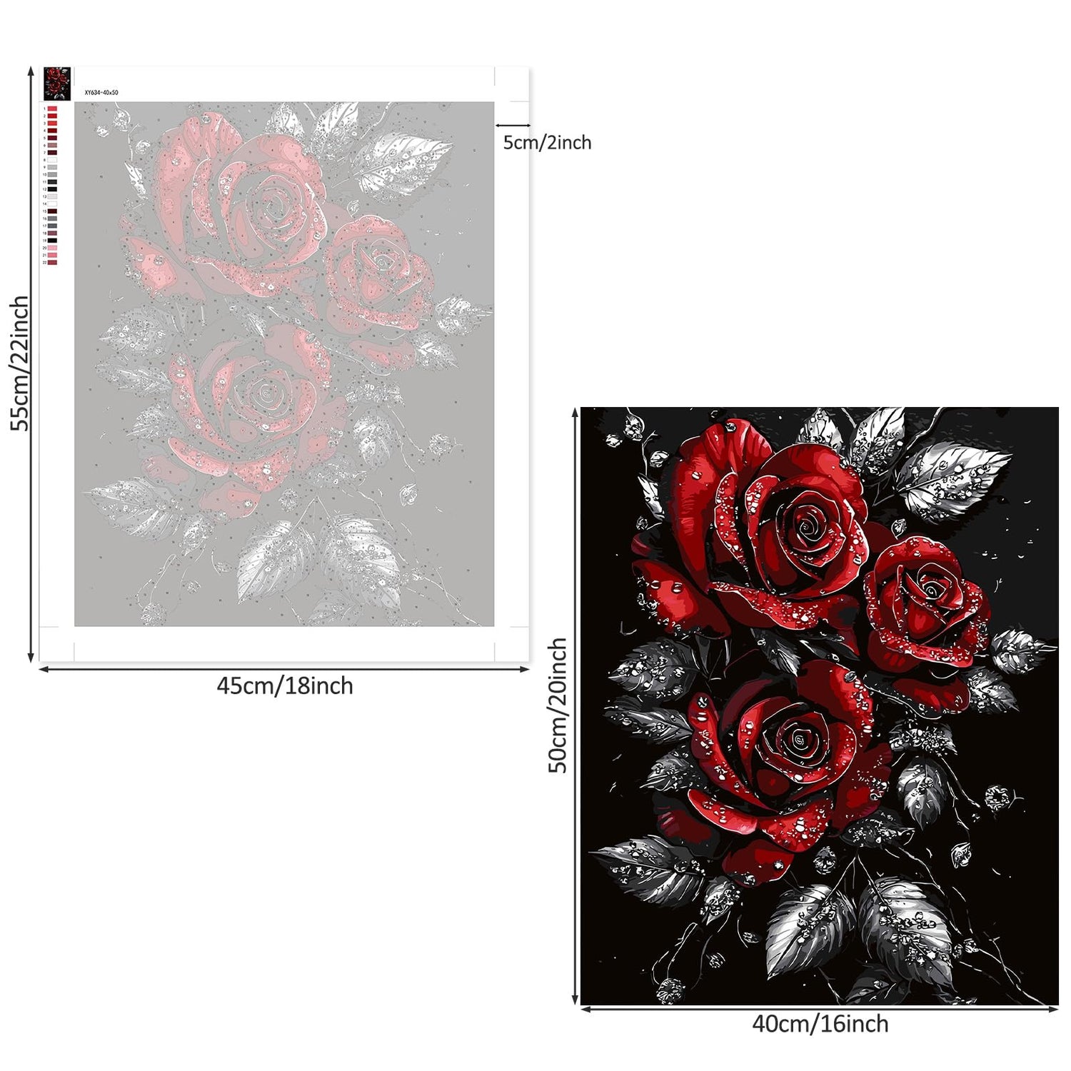 Lxmsja Red Roses Paint by Numbers Kit for Adults, Silver Leaves Acrylic Paint by Numbers for Adults Beginner, DIY Craft Supplies Oil Painting Kits for Home Wall Decor 16x20 inch (No Frame)