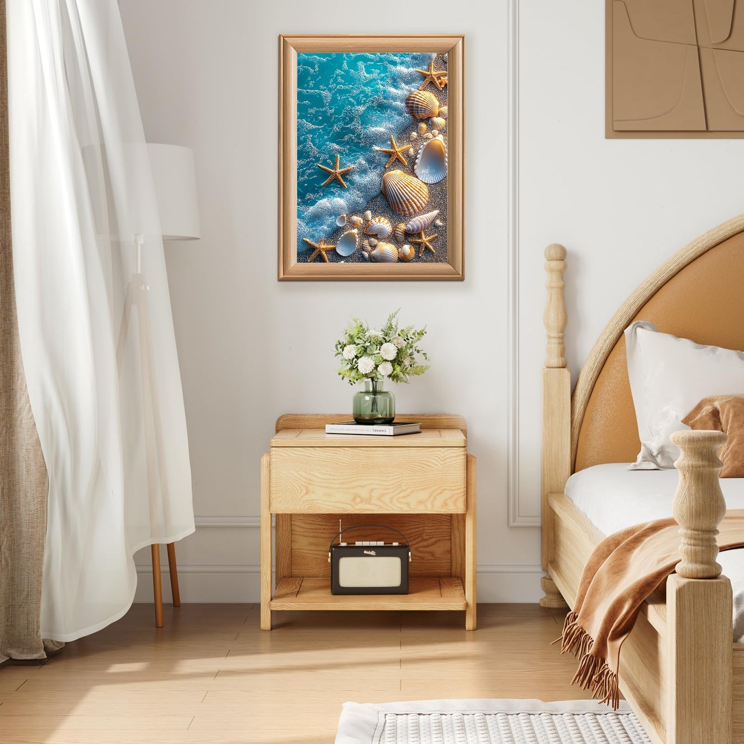 Lxmsja Seashells Diamond Art Kits for Adults, Beach Diamond Painting Kits for Beginners, 5D DIY Full Drill Gem Art Crafts for Adults, Home Wall Decor 12x16 inch