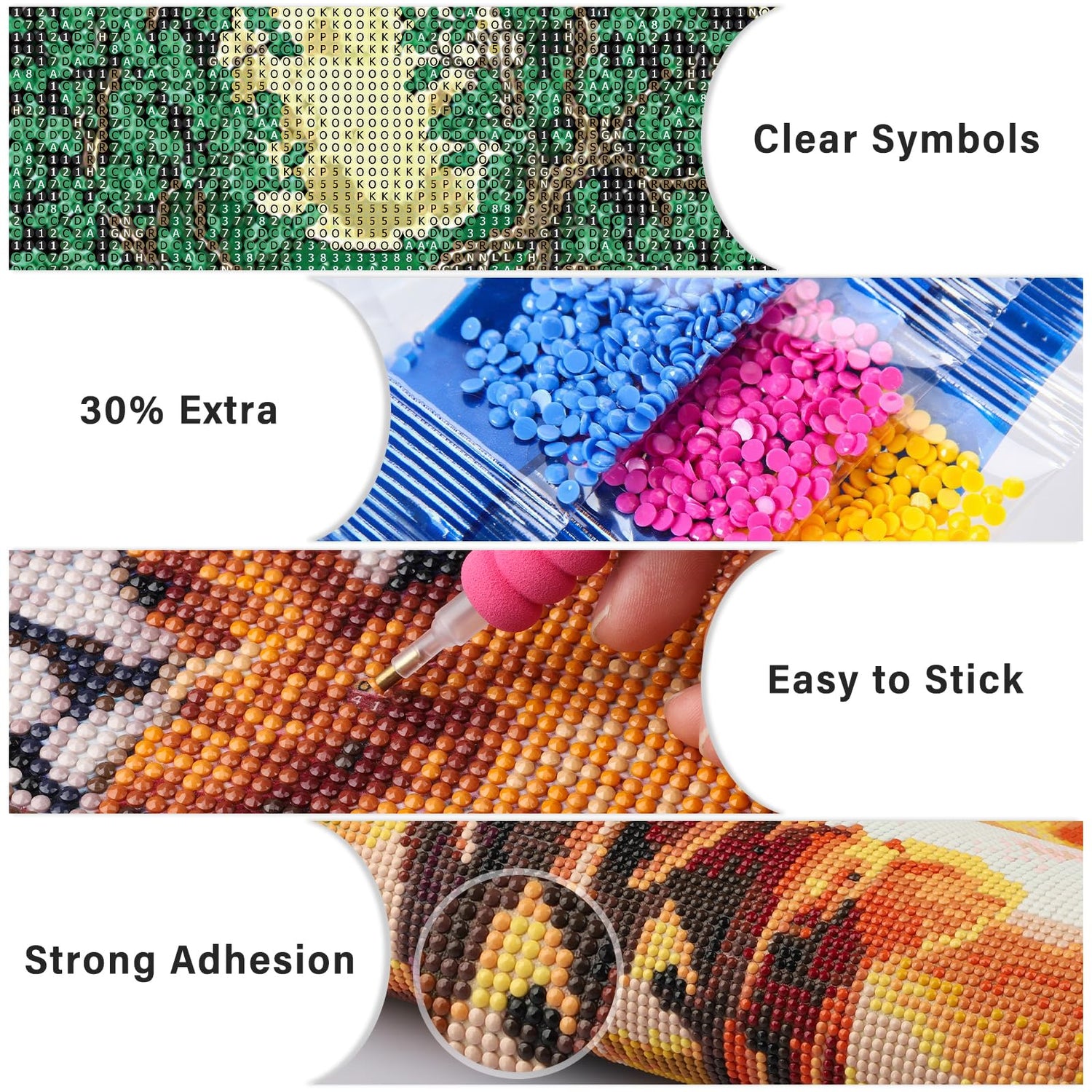 - HD Printed Canvas: There are clear numbering symbols and easy-to-follow instructions on diamond art kit with vivid colors, and beautiful images; The Canvas of the diamond painting kit is highly viscous without diamonds coming off easily
