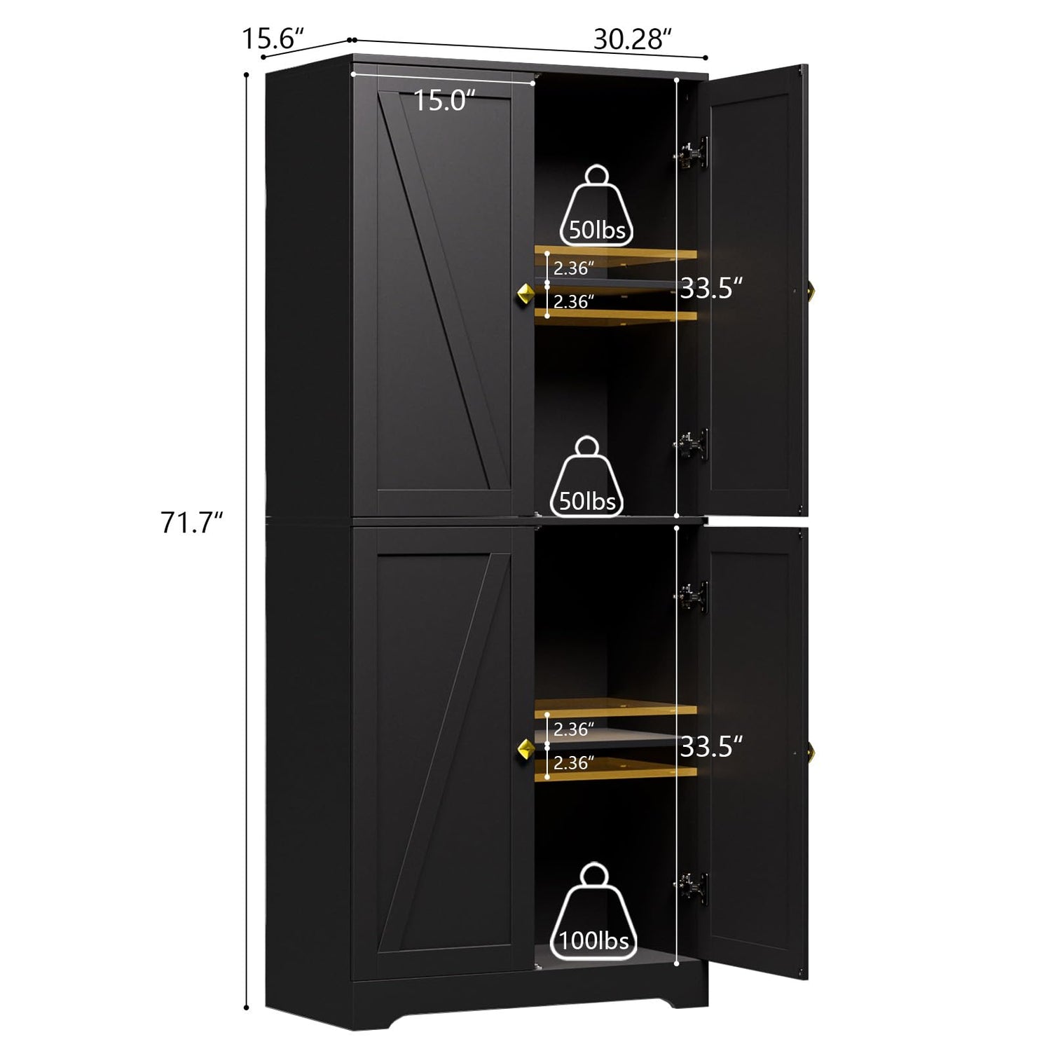 LYNSOM Farmhouse Pantry Cabinet, Kitchen Pantry Storage Cabinet with Barn Doors, 72" Tall Kitchen Pantry with Adjustable Shelves, Black Storage Cabinet for Kitchen, Dining Room, Black