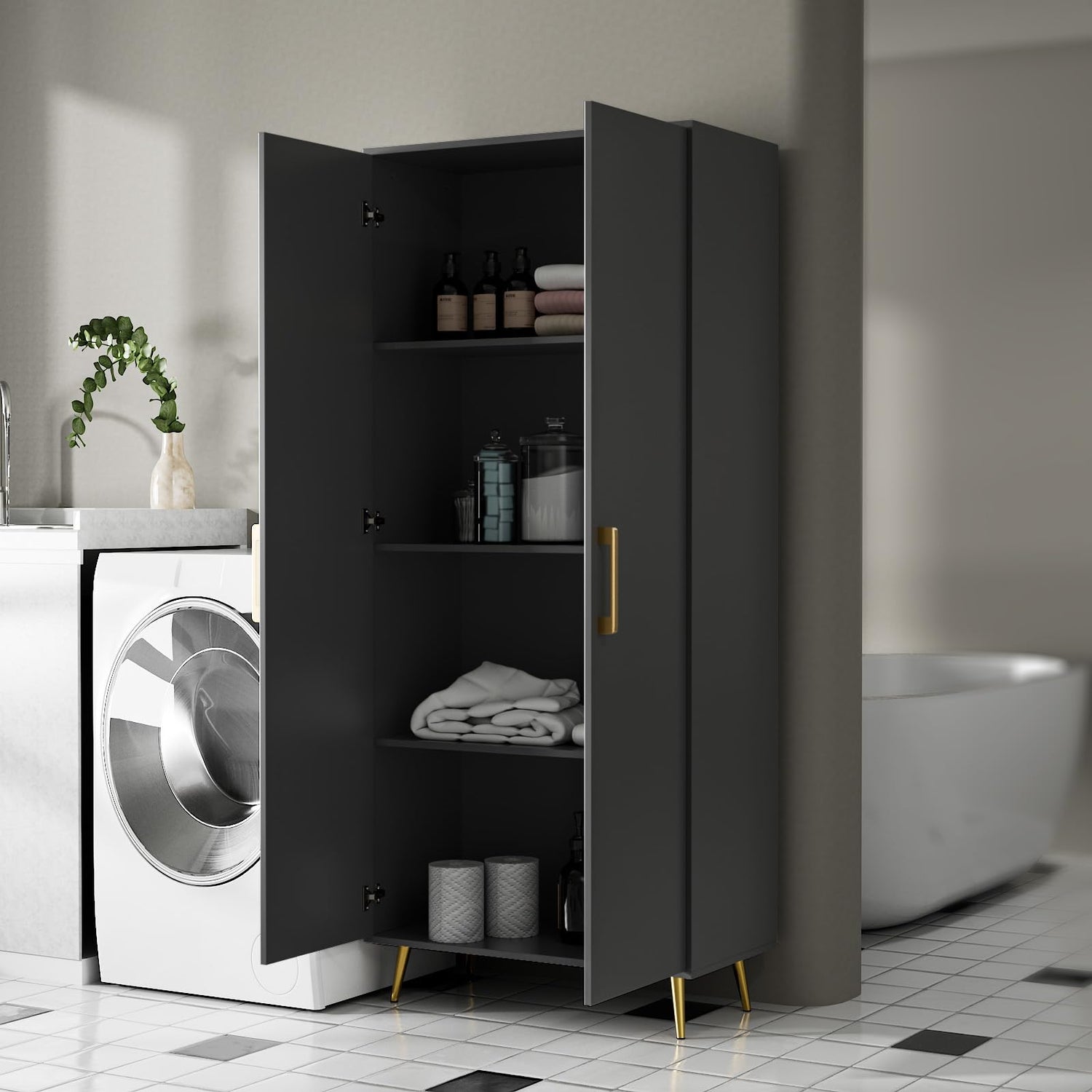 - 【Undefined Versatile Design】Overall black with gold accent and elegant Design can meet your aesthetic needs. Versatile use as a storage cabinet in the kitchen, laundry room, utility room, bedroom living room, office, and garage to satisfy your diversifying needs.