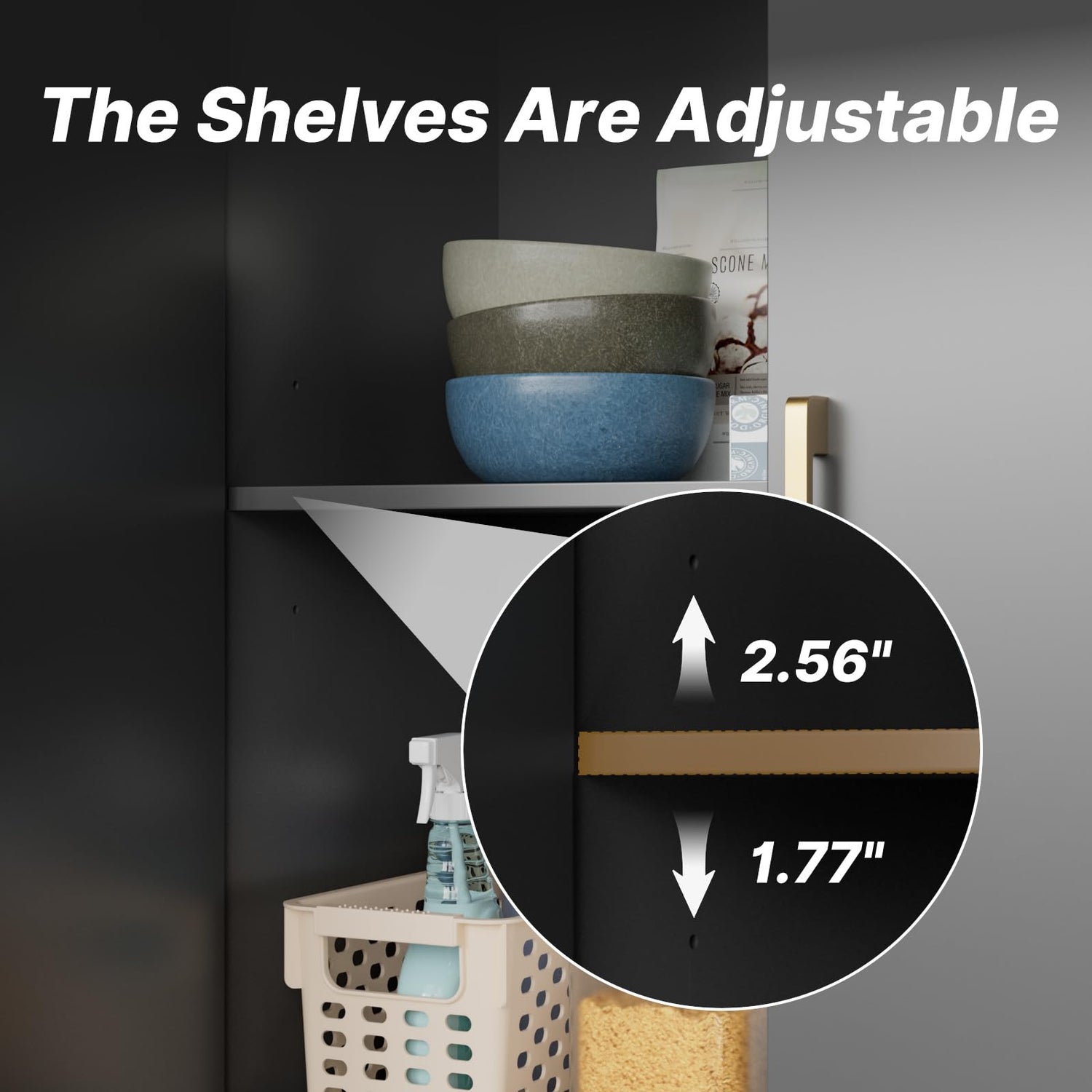 - 【Sturdy and Safety】Metal mardware and solid high quality board ensure a durable and solid kitchen storage cabinet, ideal for home lovers. Additionally, for creating a safe environment for your family, this Pantry Cabinet is designed with anti-tip devices so you don't have to worry about your family's safety anymore.