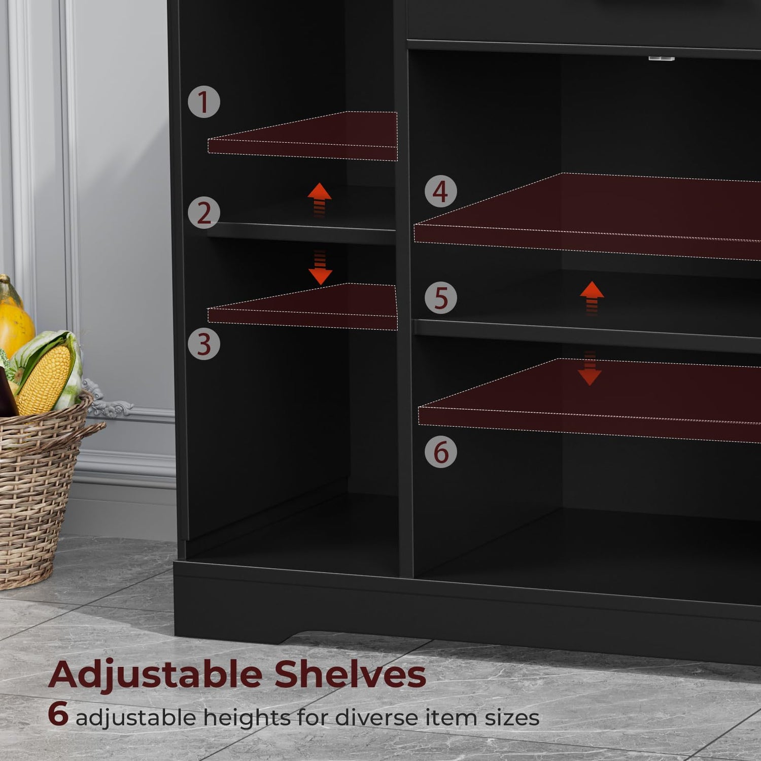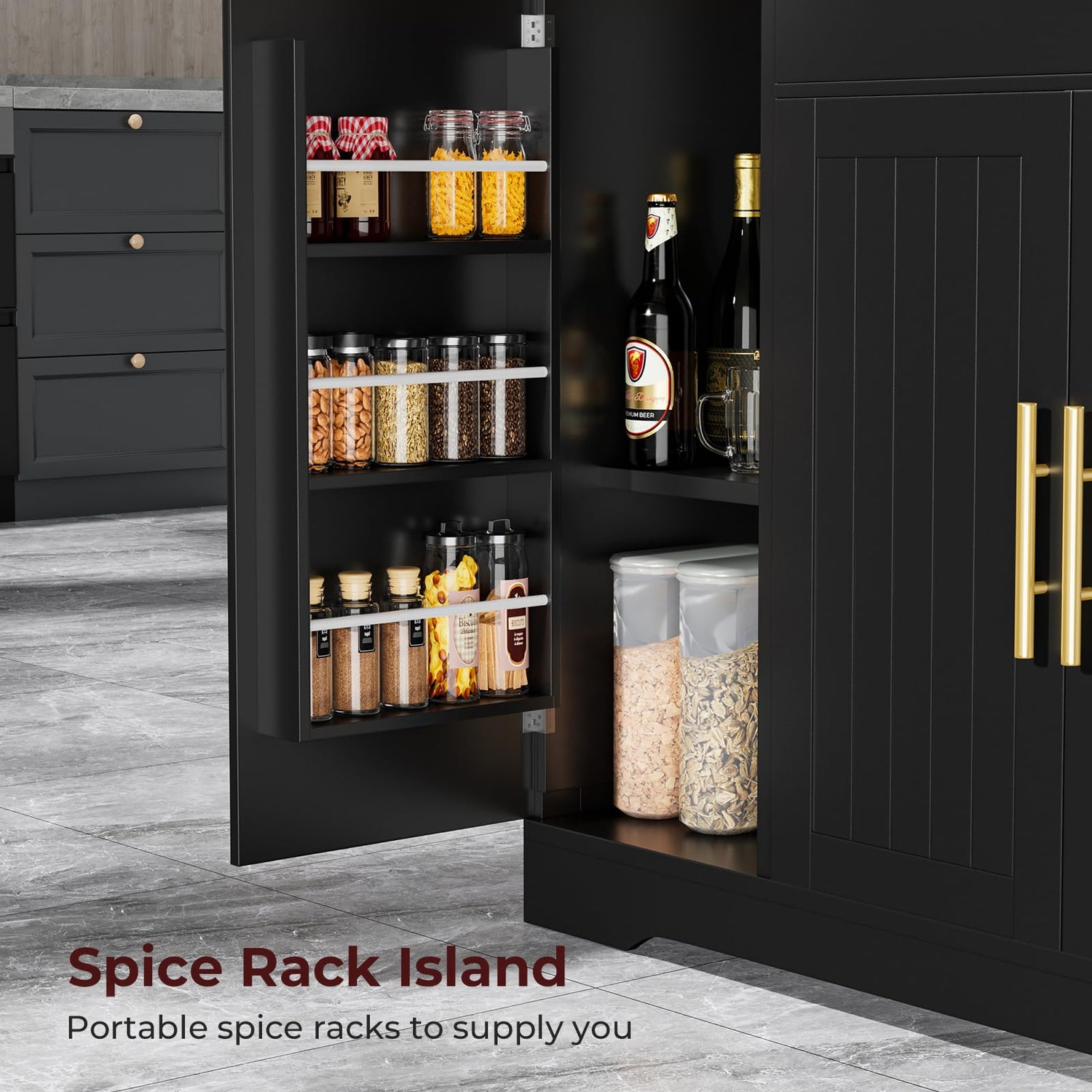 - 【Space-Saving Elegance】Large kitchen island built-in spice rack and large drawer feature an open design for easy access, enhancing kitchen efficiency with its durable, minimalist style. Includes a full installation kit for quick setup