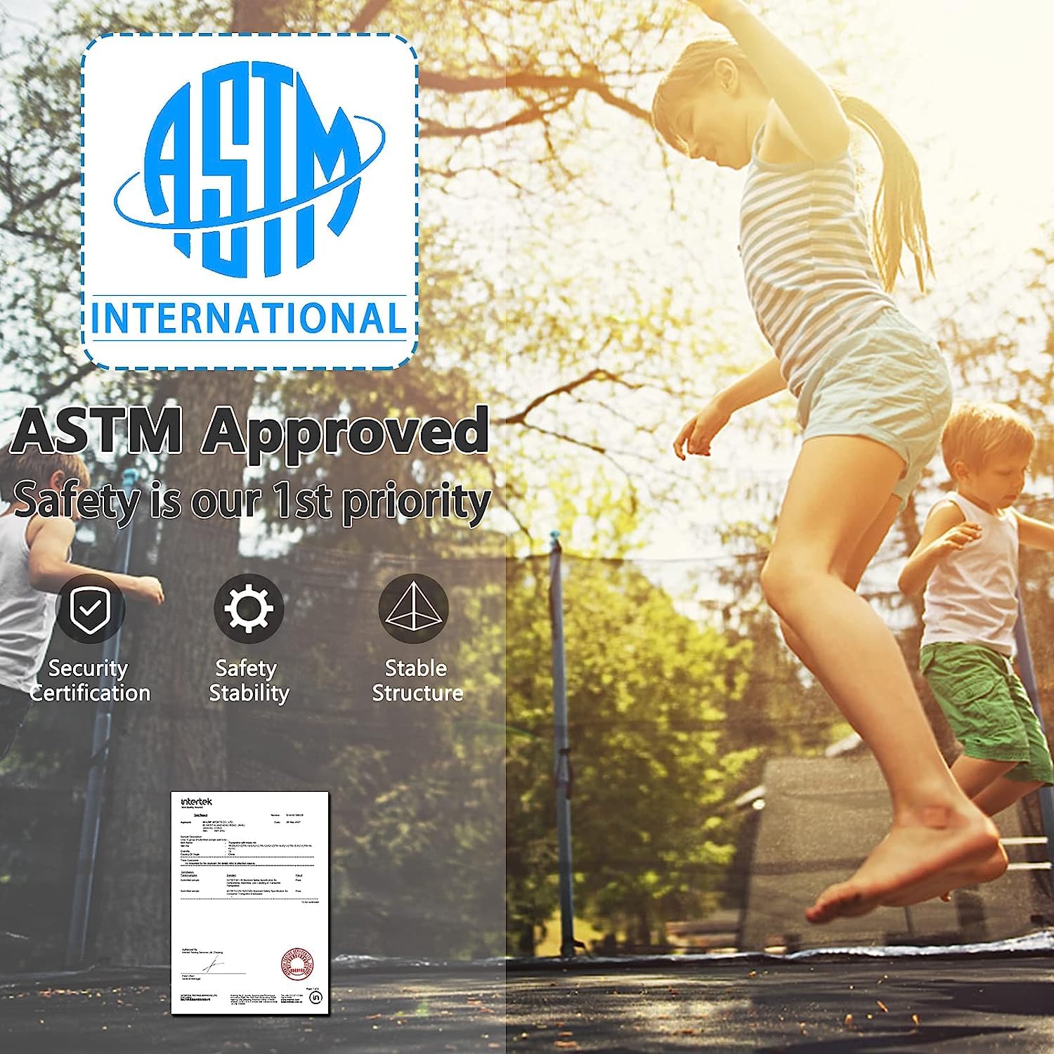 - 【Super Bouncy Trampoline】This 12 foot outdoor trampoline with sprinkler is equipped with 72pcs large springs and a reinforced trampoline jumping mat ensures longer service life and better bounce, passed American UV standard 5000hours test