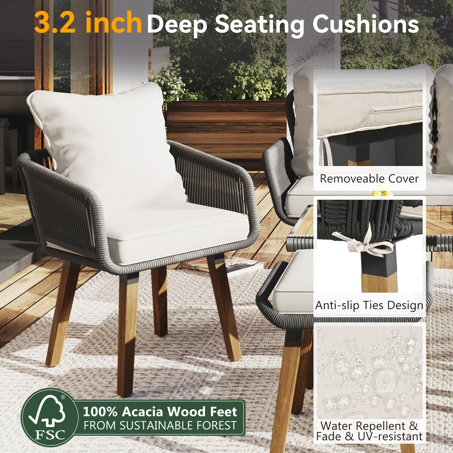 LZ LEISURE ZONE 6-Piece Beige Patio Conversation Set with Acacia Wood Cool Bar Table and Rope Weaving Chairs