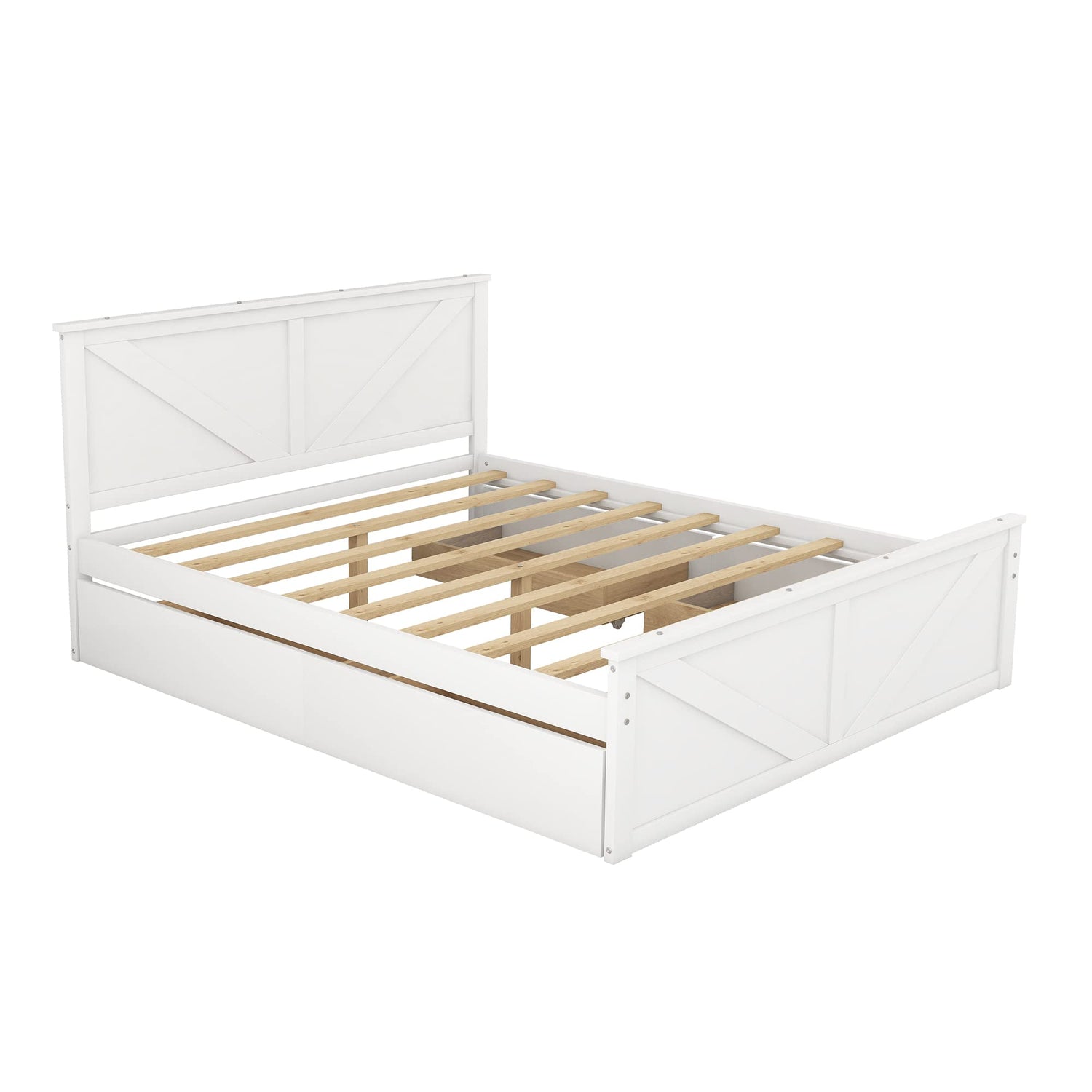 Queen Size Platform Bed with 4 Storage Drawers and Wooden Headboard – Sturdy Frame by LZ LEISURE ZONE (White)