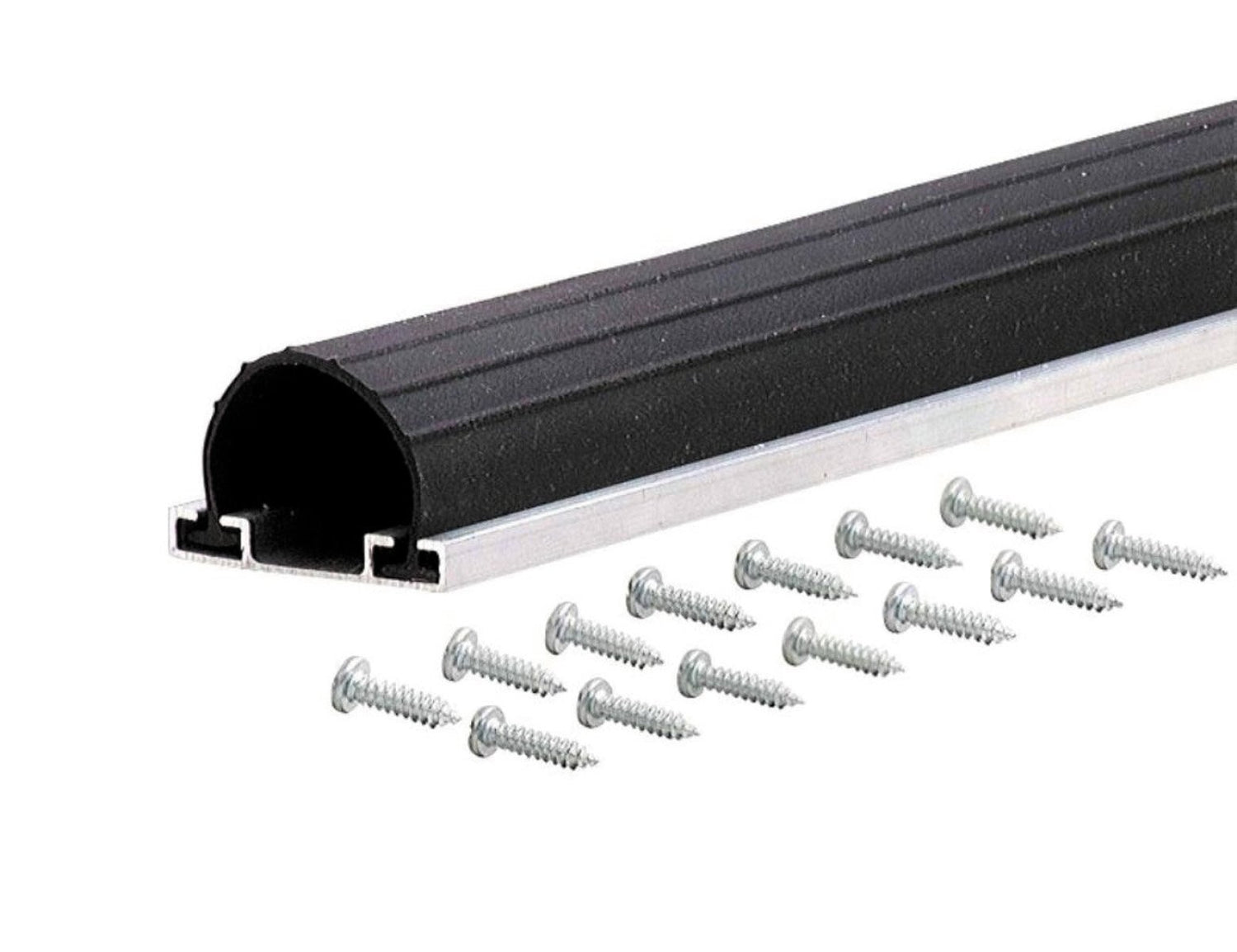 The M-D Aluminum and Vinyl Garage Door Bottom Seal features a durable aluminum channel and a flexible vinyl insert for protection from drafts, moisture, dust and insects. The seal remains flexible in cold temperatures and screws are included for installation. Before installation, cut aluminum to desired length using a hacksaw and cut vinyl insert with scissors.