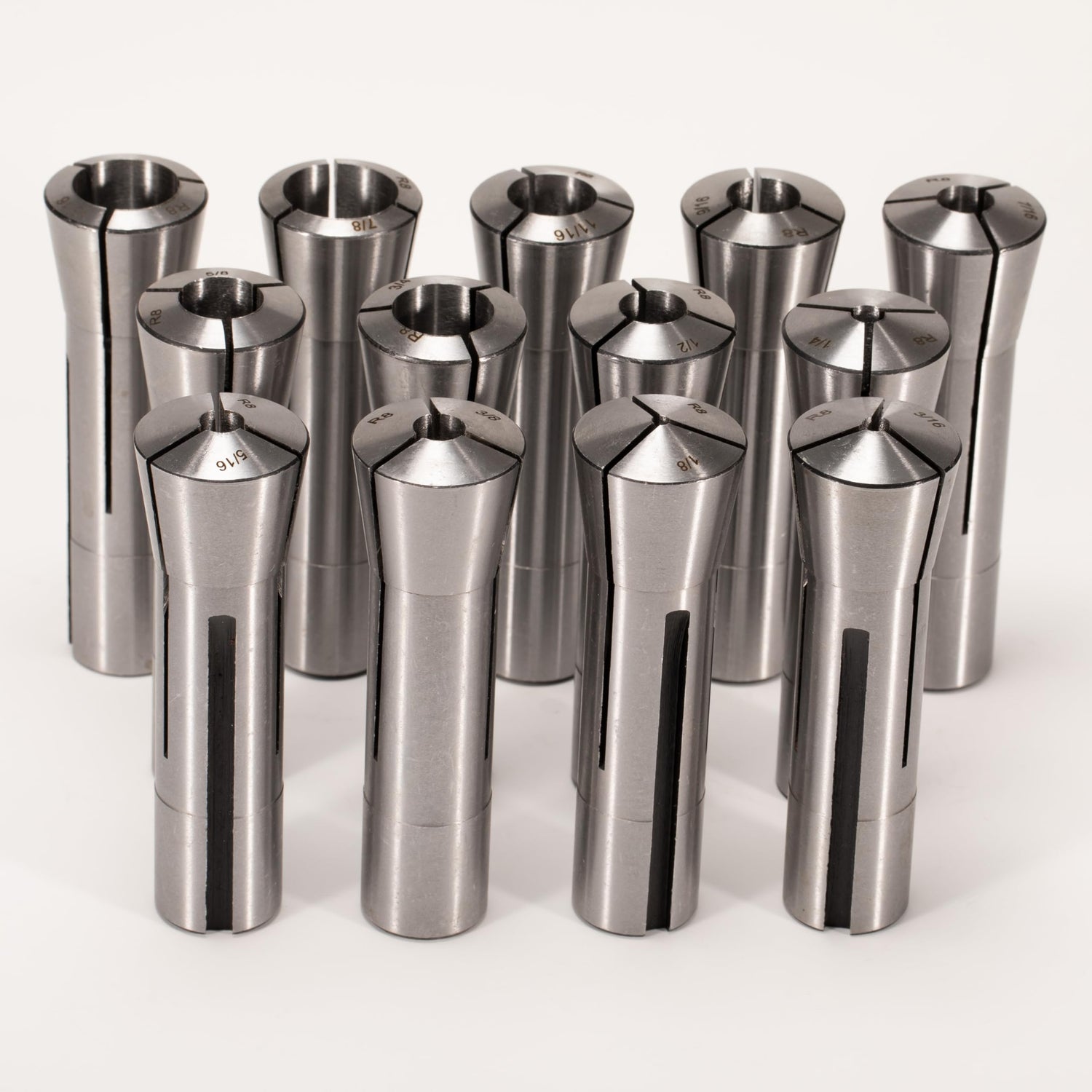 - 【Sizes】: 13 collets in sizes 1/8", 3/16", 1/4", 5/16", 3/8", 7/16", 1/2", 9/16", 5/8", 11/16", 3/4", 13/16", and 7/8".
