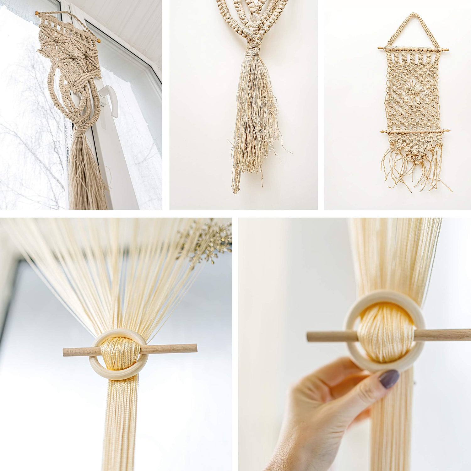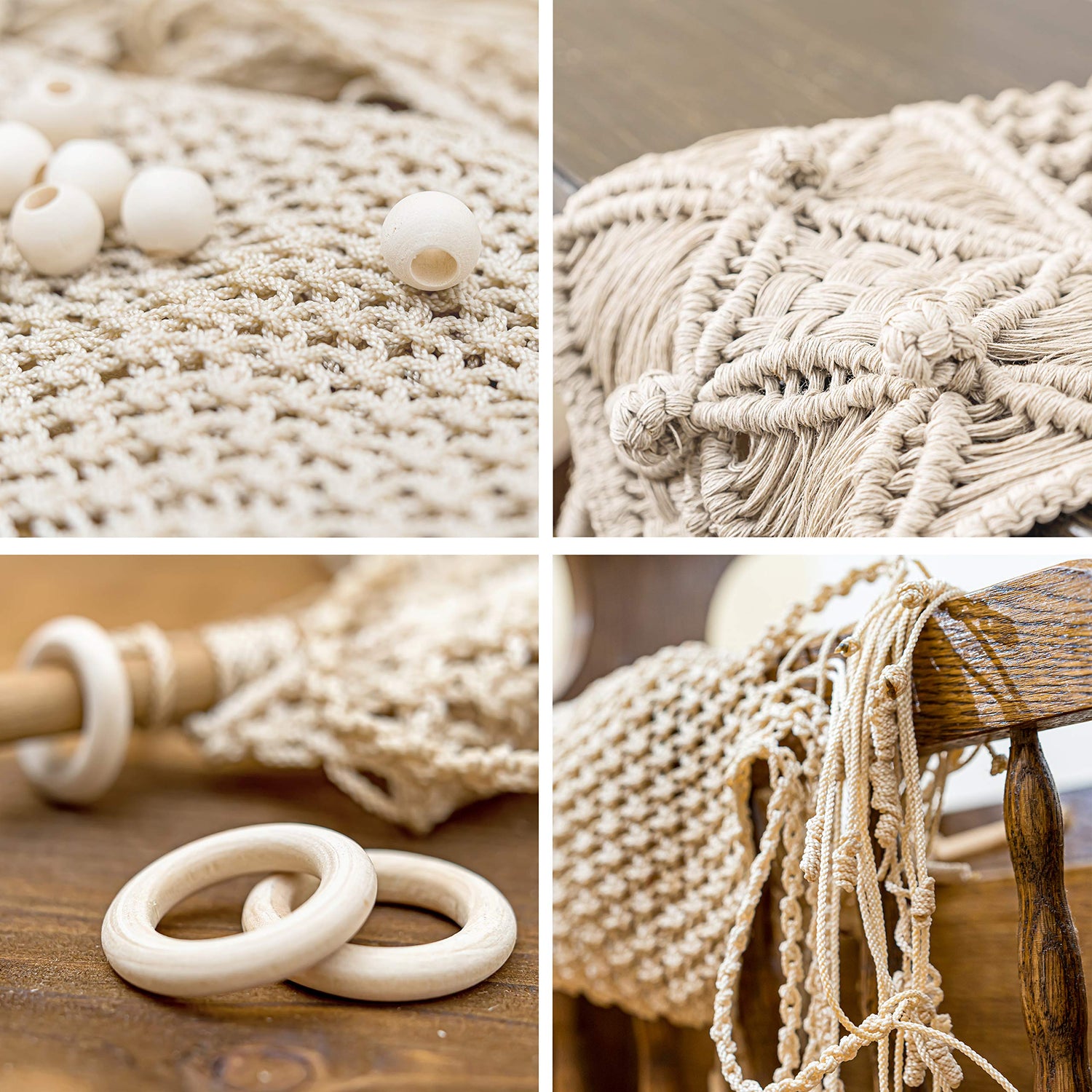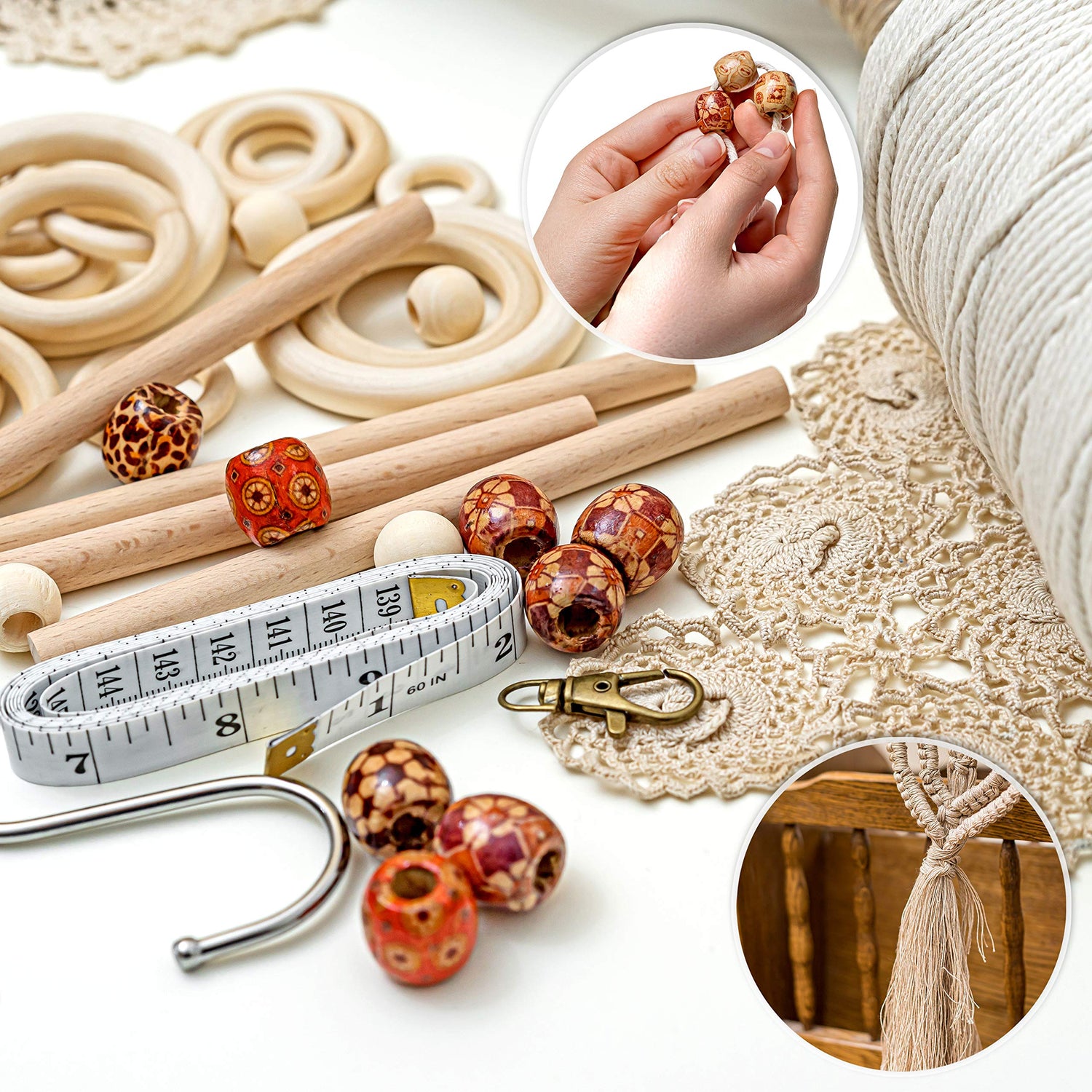 - ✅ THOUGHTFULLY DESIGNED - Our macrame supplies kit includes 675ft/225yd of thick macrame cord 3mm, 200 large colored macrame beads, 16 mixed wooden rings, 4 wood macrame dowel sticks, 2 s hook pot planter hangers, string keychain clasp, measuring tape, scissors, and digital content!
