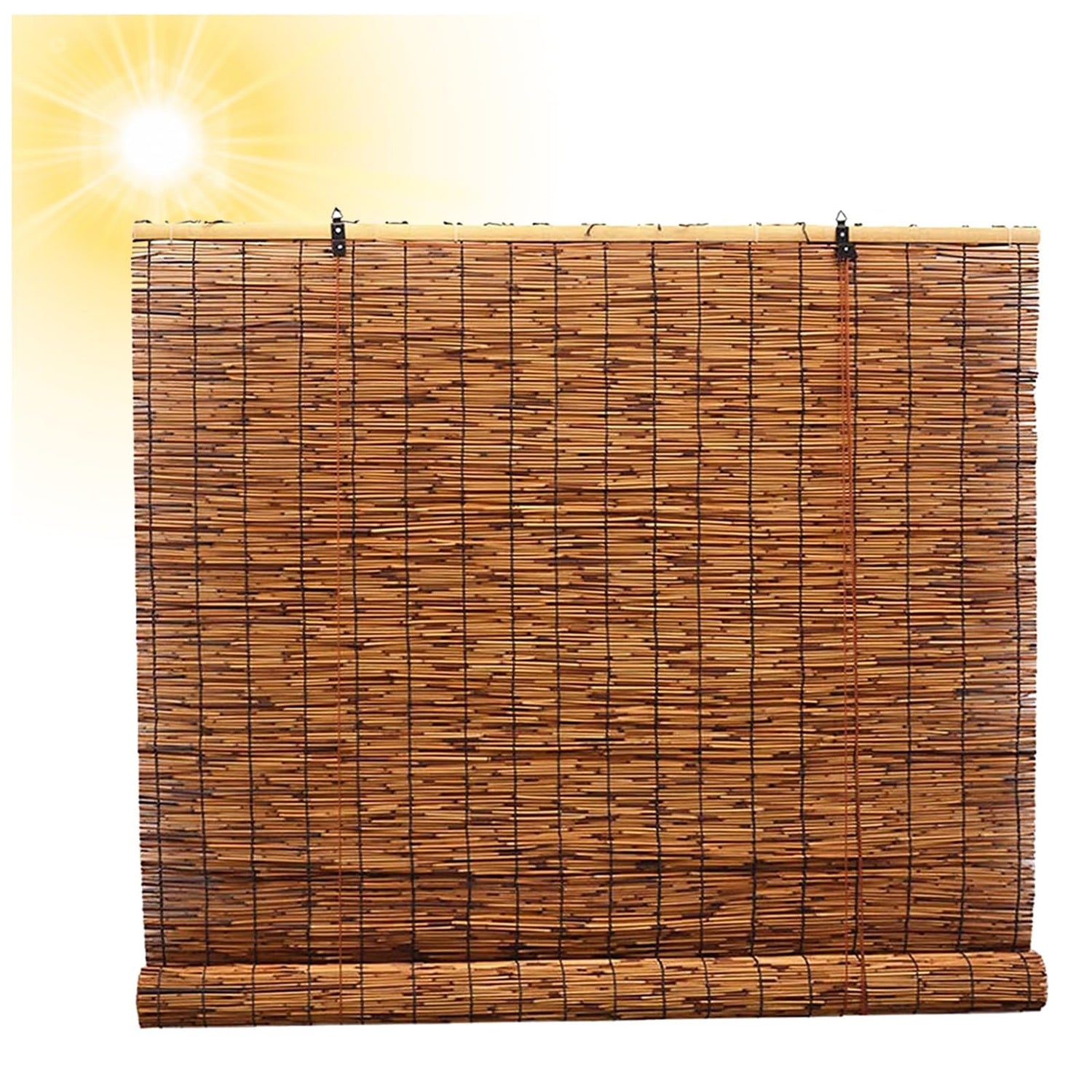 Made Natural Bamboo Roller Blinds Cordless Bamboo Blinds 25" 26" 27" 28" 31" 32" 33" 34" 35" 36" 40" 41" 42" 43" 44" 45" 46" 47" 49" 50" 56" 57" 72" Retro Outdoor Bamboo Shades for patios(Size:28" W x