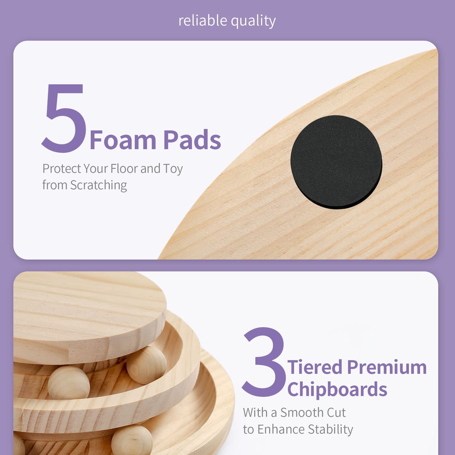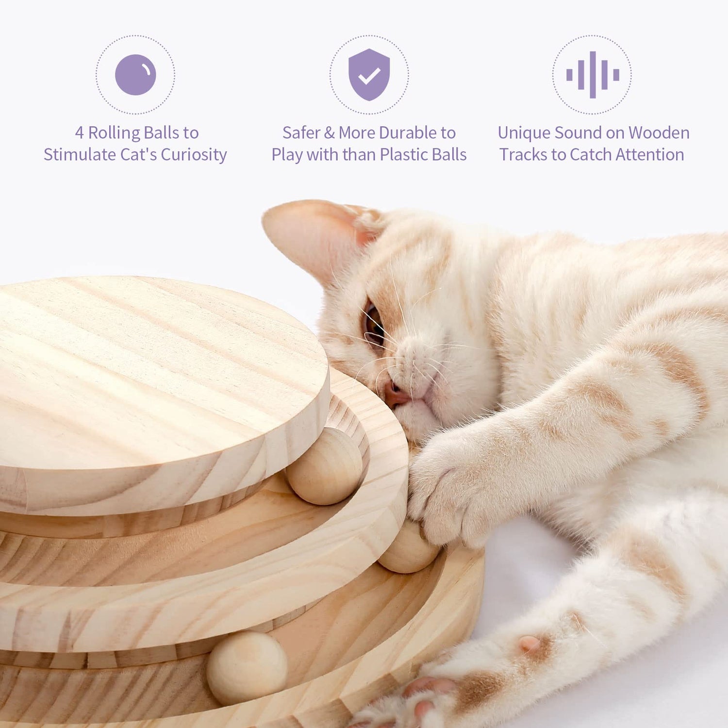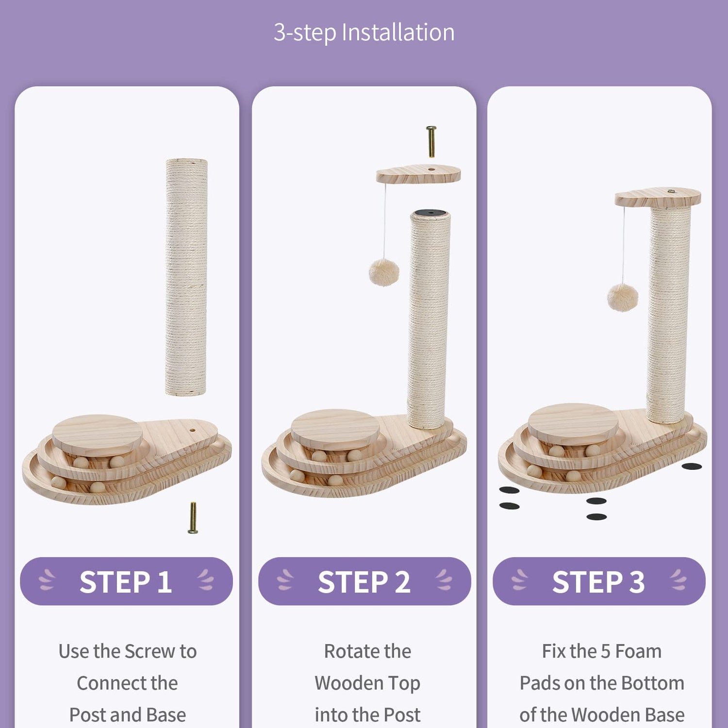 - 【3-Tier Cat Toy Board】:The cat scratchers pole is designed with 3 levels of tracks and 4 moving balls to attract kitty’s attention! Your cat will adore batting, swatting, and pouncing the playing balls as they entertain their natural instincts to hunt.