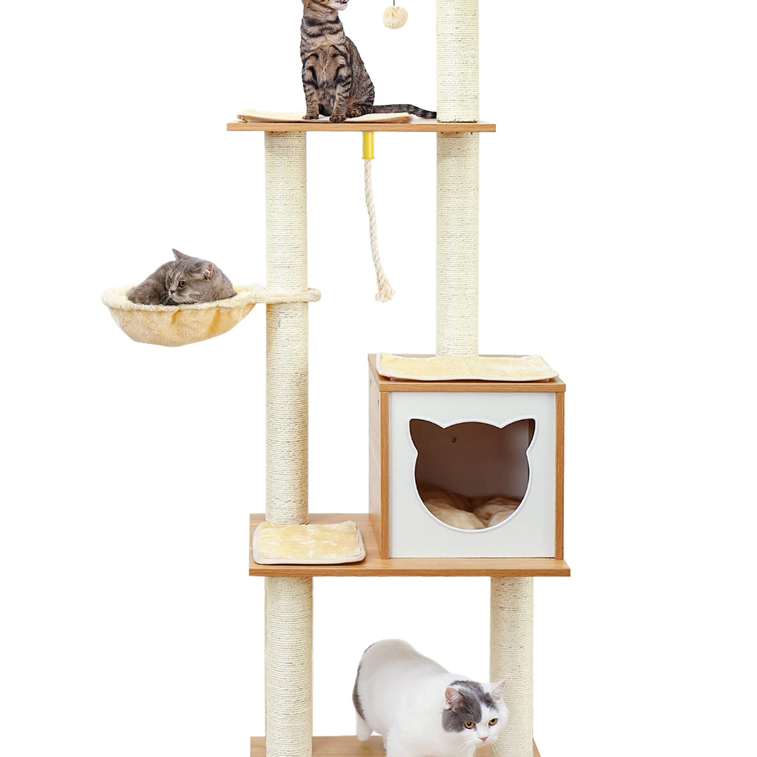 Made4Pets Cat Tree, Modern Cat Tree Tower for Indoor Cats - 65" Tall Wood Condo with Hammock, Scratching Post and Removable Pads for Small Large Cats