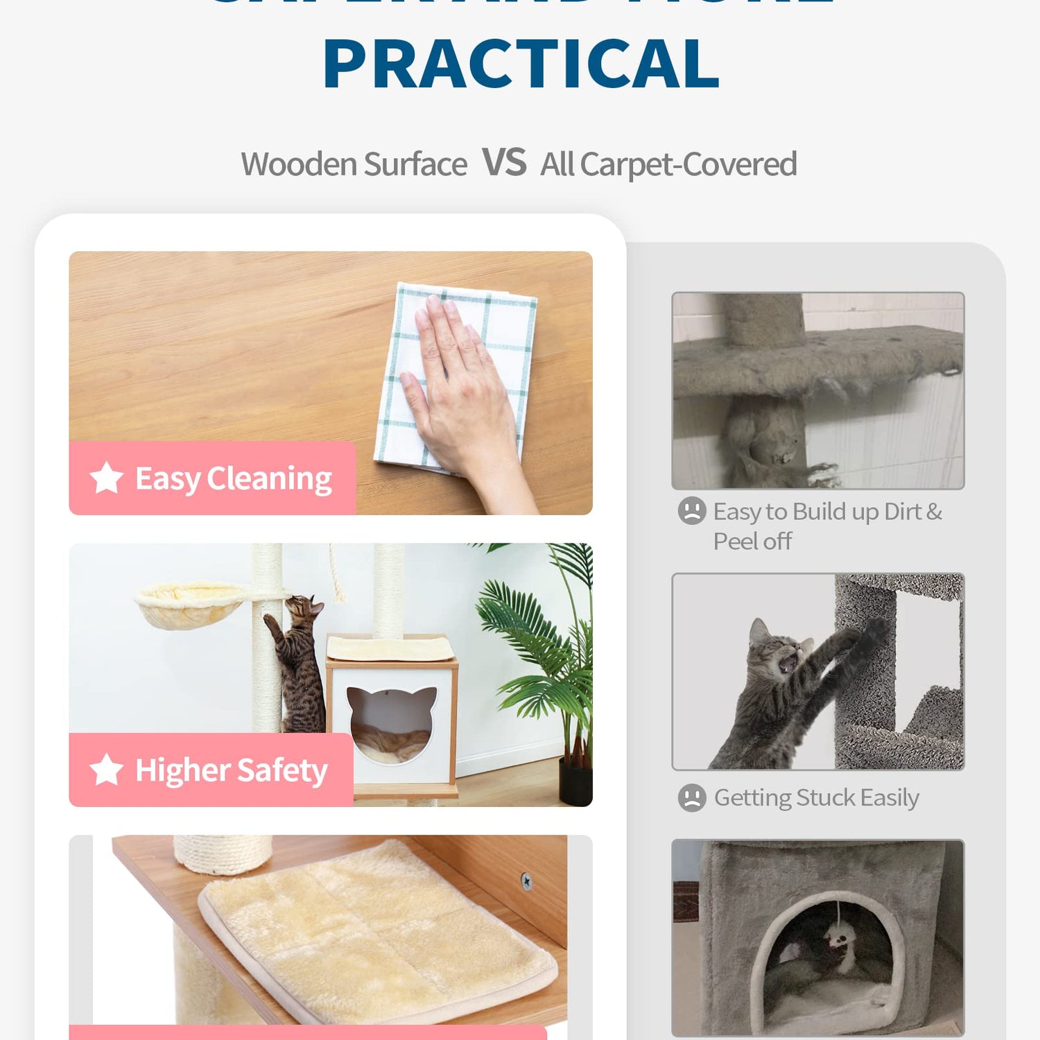 - Creative and Functional: Different from carpet-covered cat trees, we designed this wood cat tree which combines an elegant look with practicality.