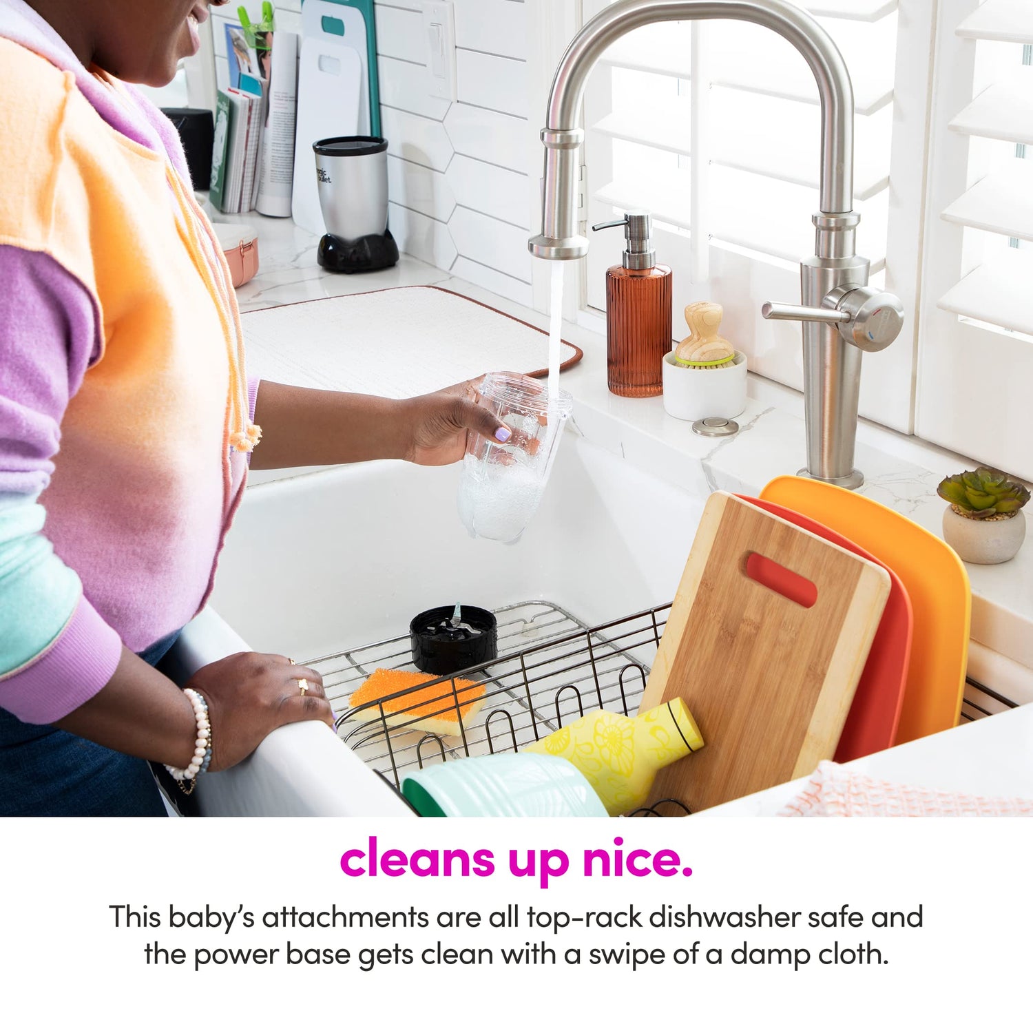 • Included: (1) 250W motor base, (1) cross-blade, (1) tall cup, (1) short cup, (1) party mug, (2) lip rings, (2) Stay-Fresh resealable lids, (1) to-go lid and 10-second recipe guide.