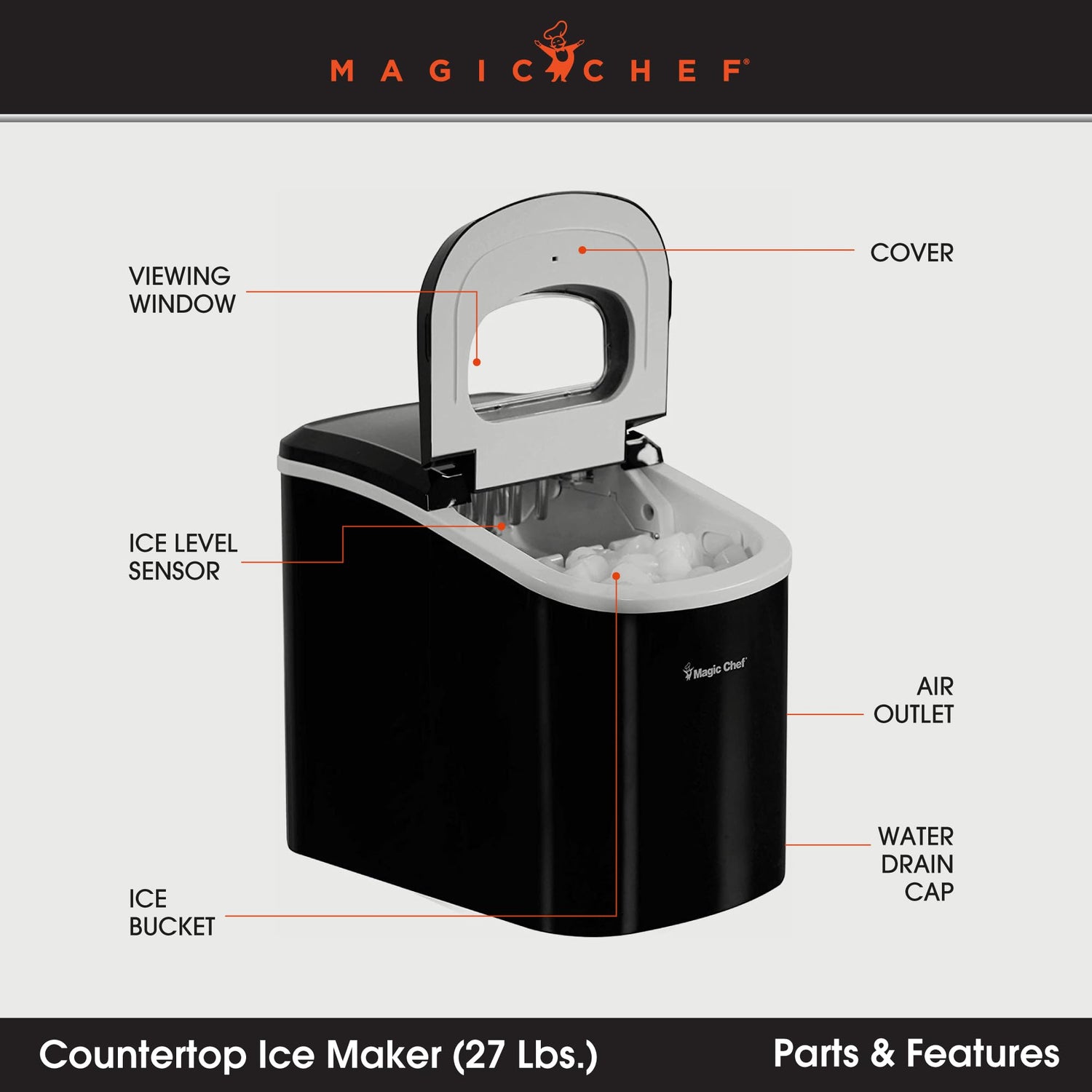 Magic Chef Portable Countertop Ice Maker, Small Ice Maker for Kitchen or Home Bar, Tabletop Ice Maker for Parties, 27-Pound Capacity, Black