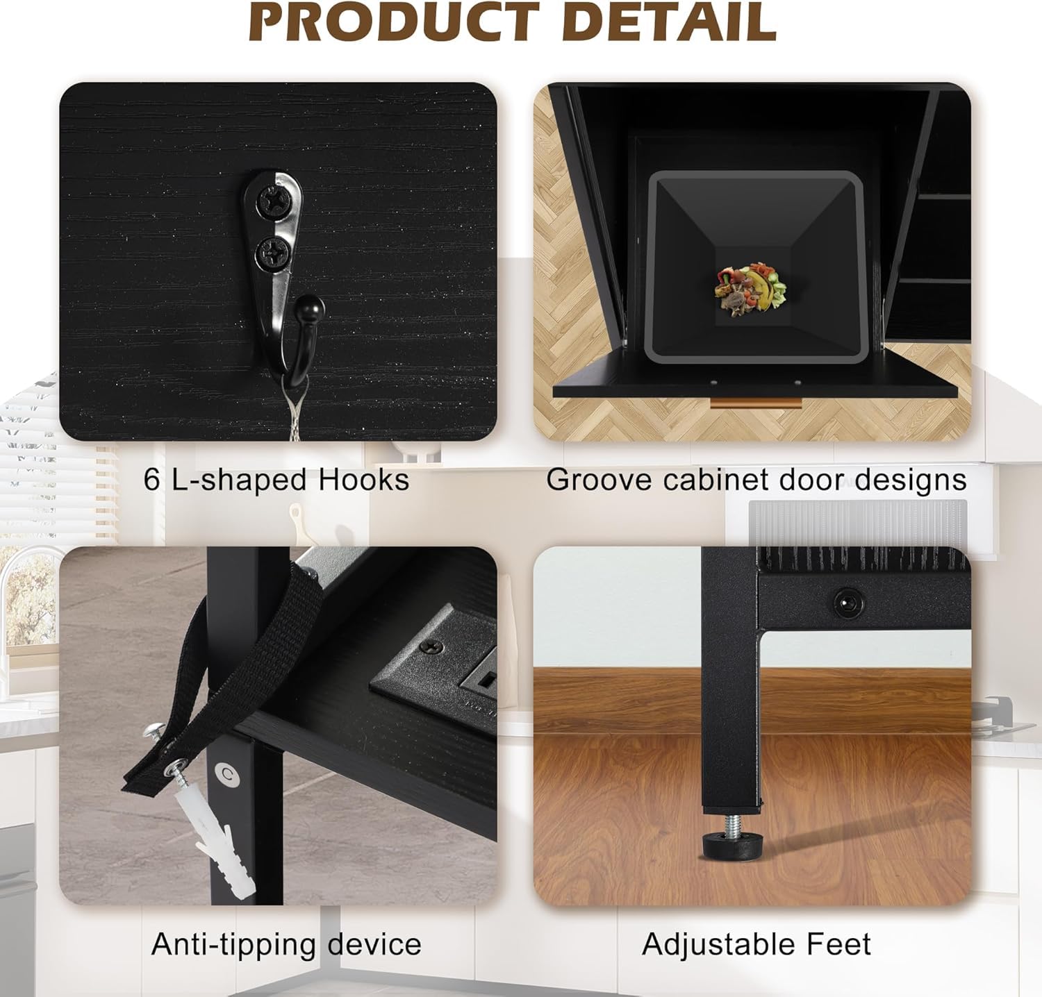 - Trash Can Cabinet Design: This kitchen microwave stand cleverly incorporates a tilt-out trash can cabinet, suitable for a 10-gallon trash can (not included), which can quick to clean the trash, keeping your kitchen clean
