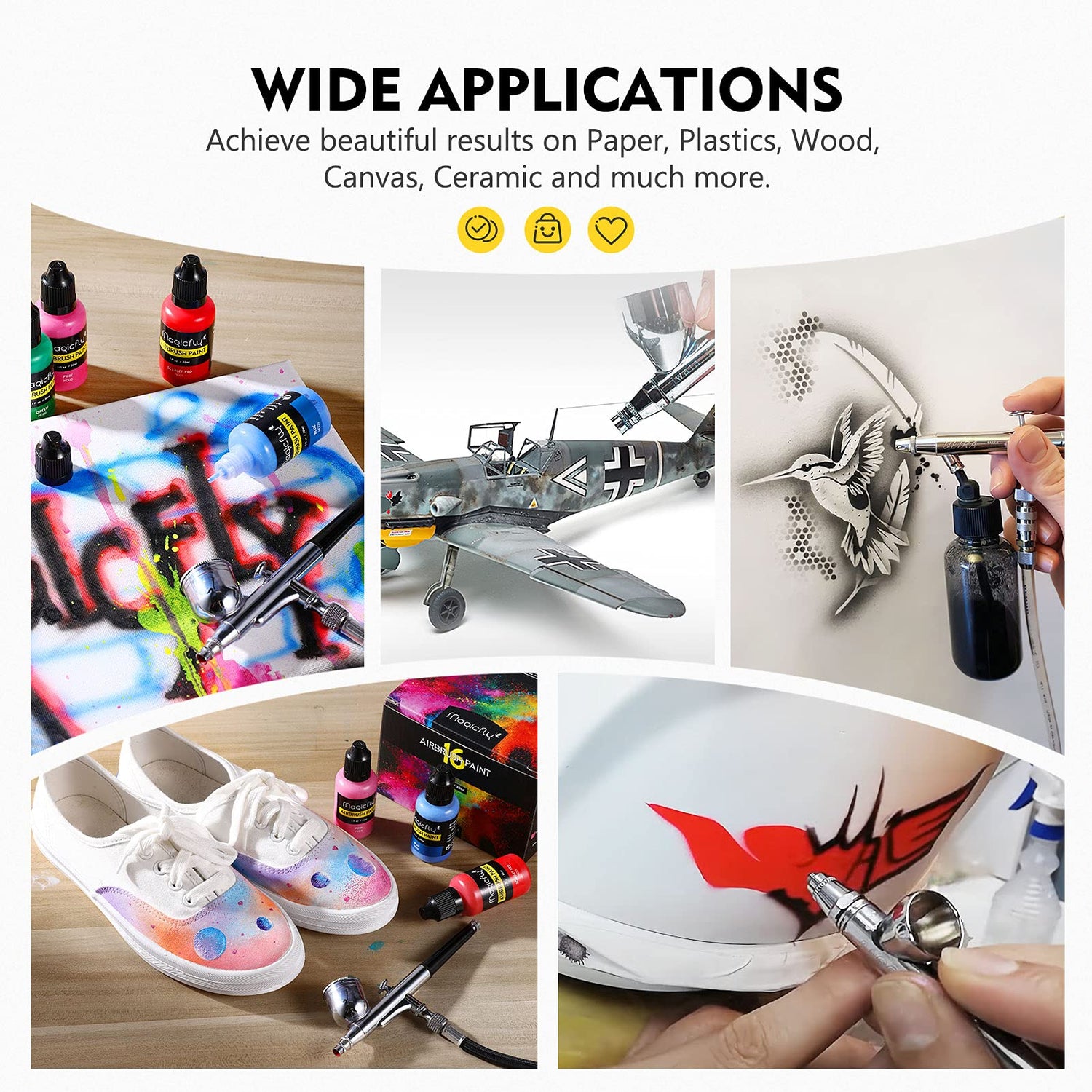 - 【Ready to Spray Paints】Magicfly air brush paints use better formula with proper ratio. Every airbrush color has wonderful airbrush flow characteristics.They can pair well with your air brush with smooth consistency and won’t clog it up. Thinning is not required.