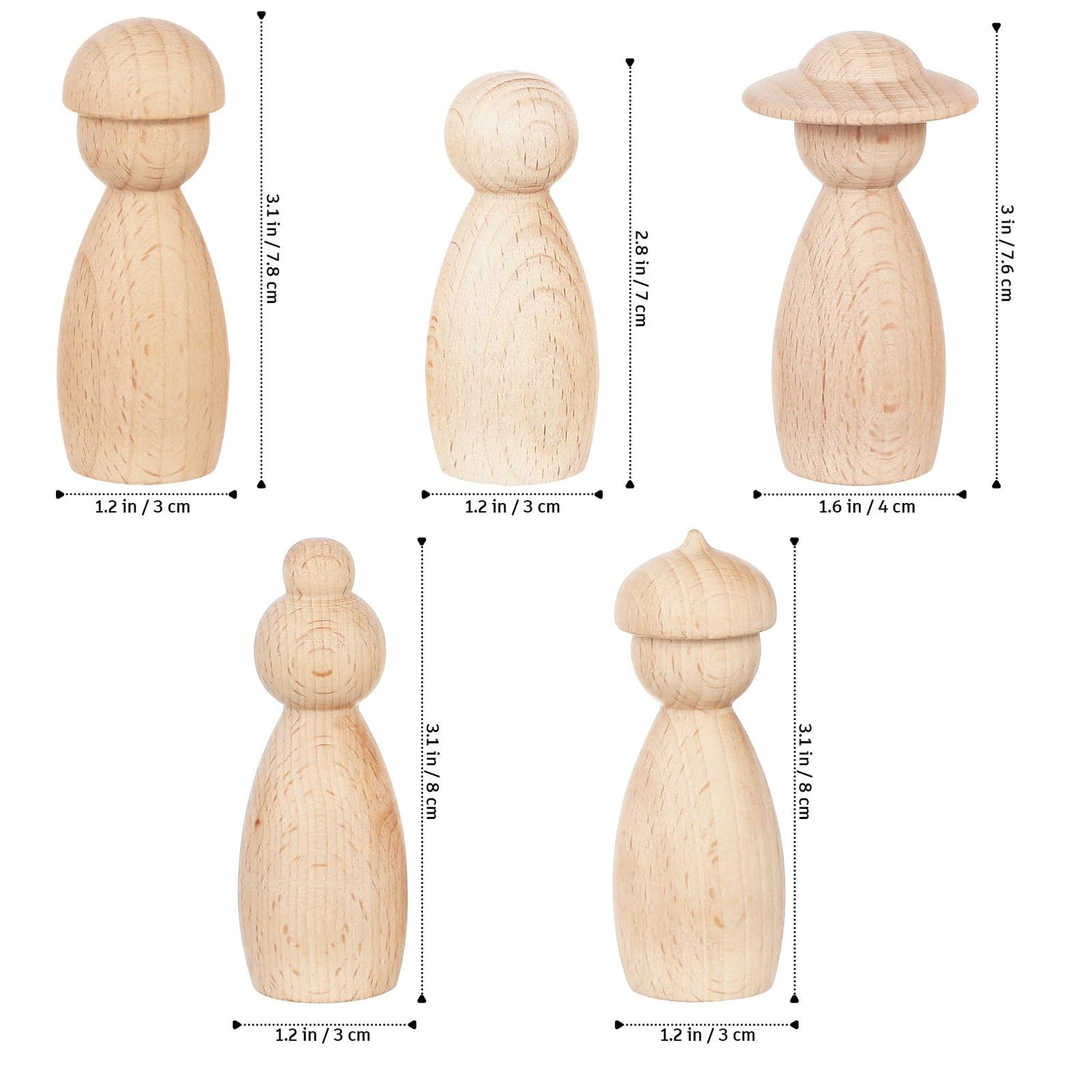 MAGICLULU 5pcs Blank Wooden Peg Dolls Unfinished Wood Dolls Unpainted Blank Puppet Dolls Wood Peg People Crafts for DIY Graffiti Painting Dollhouse Decor (3x8cm)