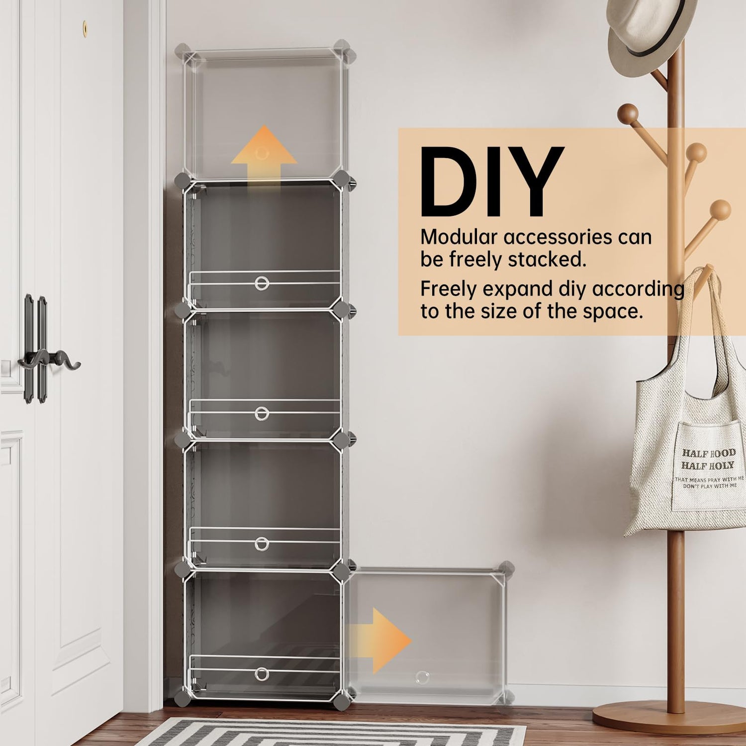 - 【Convenient & Attractive】The transparent door allows easy shoe search and identification. The Cube Shoe Rack offers flexibility in DIY configuration to suit your space and needs—such as landscape position, separate placement, ladder shape, with or without a door.
