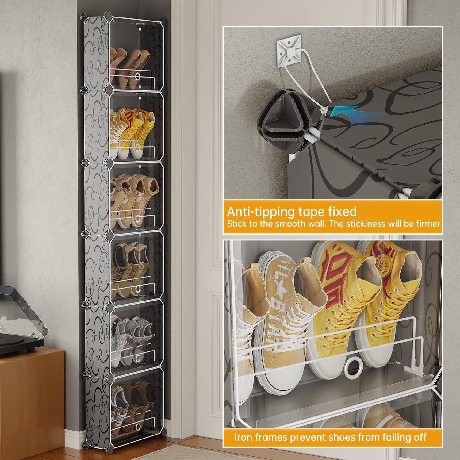 MAGINELS 6 Tier Shoe Rack Organizer with Cover, Slim Shoe Storage Cabinet, Behind The Door, Narrow Shoe Shelf for Closet, entryway, Black