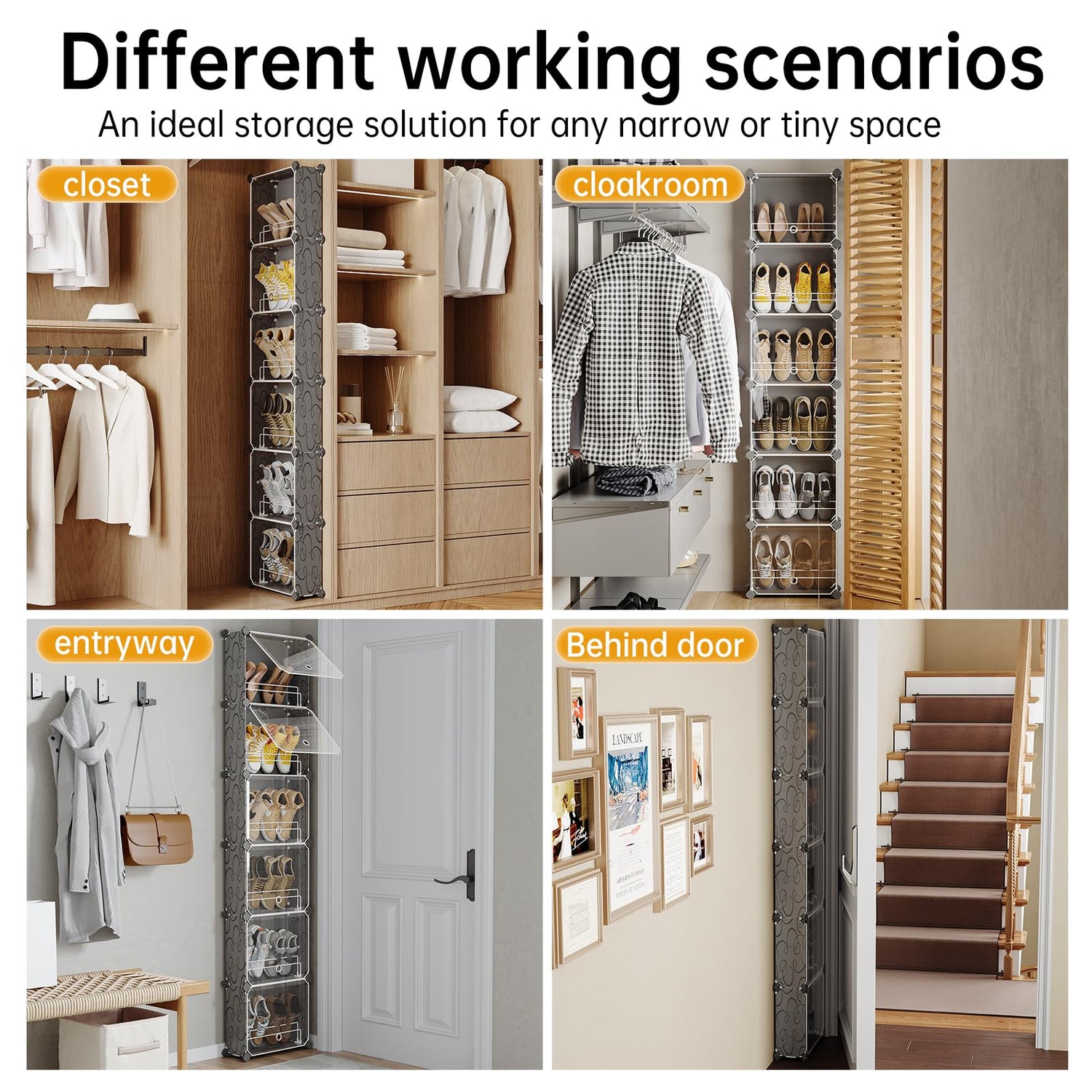 - 【Wide Applicability】Slimmer than other shoe racks, it can be perfectly concealed behind a door without occupying extra space. Compatible with all standard-sized doors on the market, it won't interfere with door functionality.