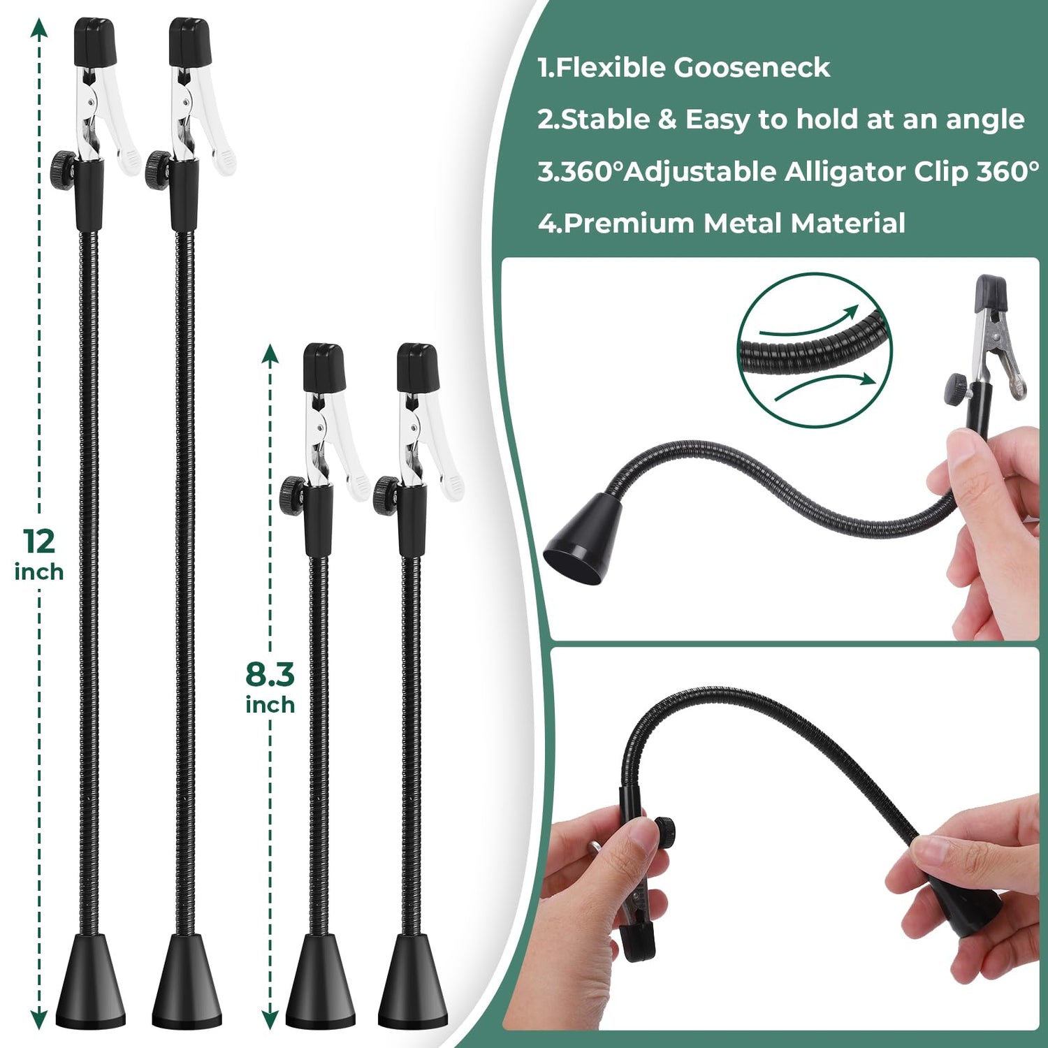 - Flexible Metal Gooseneck: Soldering hands with 4 adjustable metal gooseneck arms, including two 12-inch and two 8.3-inch arms), the metal gooseneck can be easily positioned, stable and easy to hold at an angle without bouncing. The bottom of the gooseneck comes with a strong magnetic base that has a powerful attraction to the metal base. It ensures that your project stays put, thus guaranteeing accurate and stable work.
