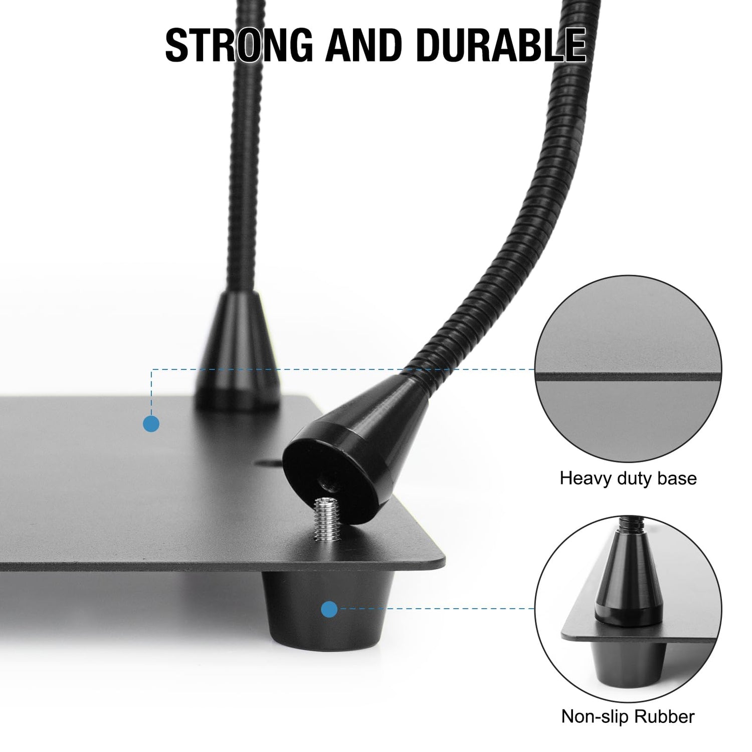 - HEAVY DUTY BASE: 9.76" X 8.07" rectangular painted steel base features industrial grade counterweight construction that will never tip over. The base has 4 non-slip rubber pads that prevent your welding assistant from sliding on the workbench, giving you more stability and smoother welding work. It also protects the base from scratches and abrasions.