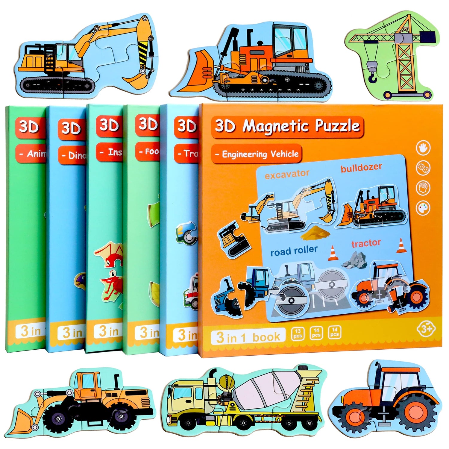 Magnetic Puzzles for Kids Ages 1-3, Travel Toddler Puzzles Ages 2-4 Year, Excavator Refrigerator Magnet for Kids Learning Gift for Road Trip
