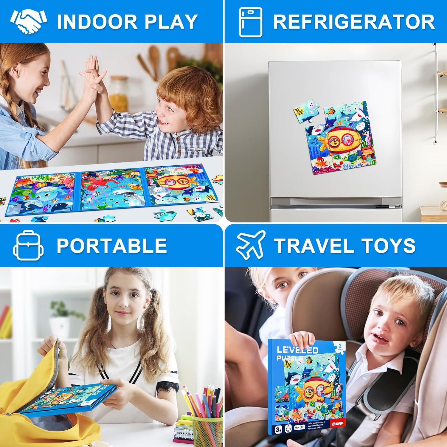 Magnetic Puzzles for Kids Ages 3-5, 3 in 1 Ocean World Toddlers Magnet Jigsaw Puzzle Book, Kids Travel Puzzles Toys, Preschool Learning Toy for Kids 3-8 Year (Ocean World)