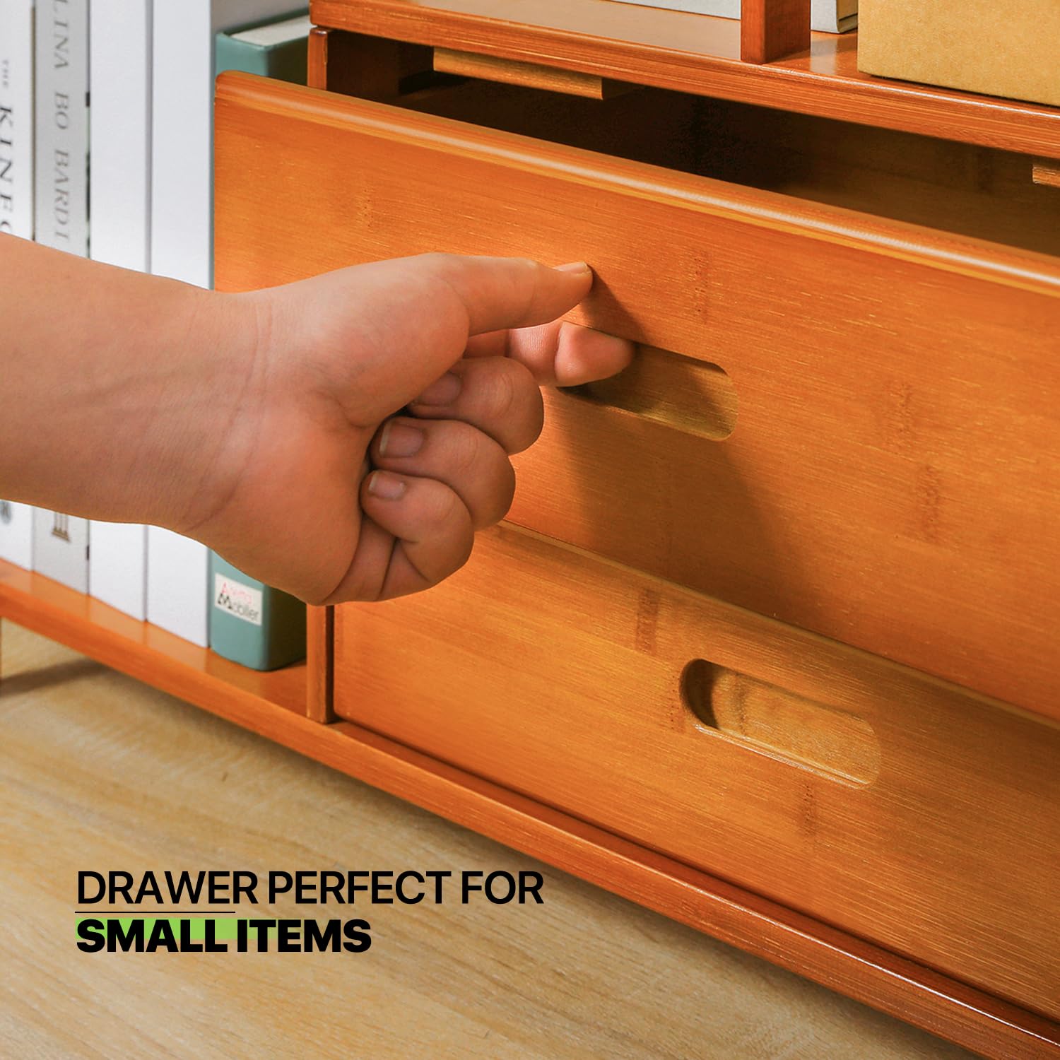 - Bookcase with Drawer Cabinet: Our dust-proof drawer cabinet offers ample storage space for storing private items. The drawers can be pulled all the way out smoothly, giving you easy access to your stored belongings. This storage cabinet is also designed to keep your items free from dust and other contaminants, ensuring that they remain in good condition over time.