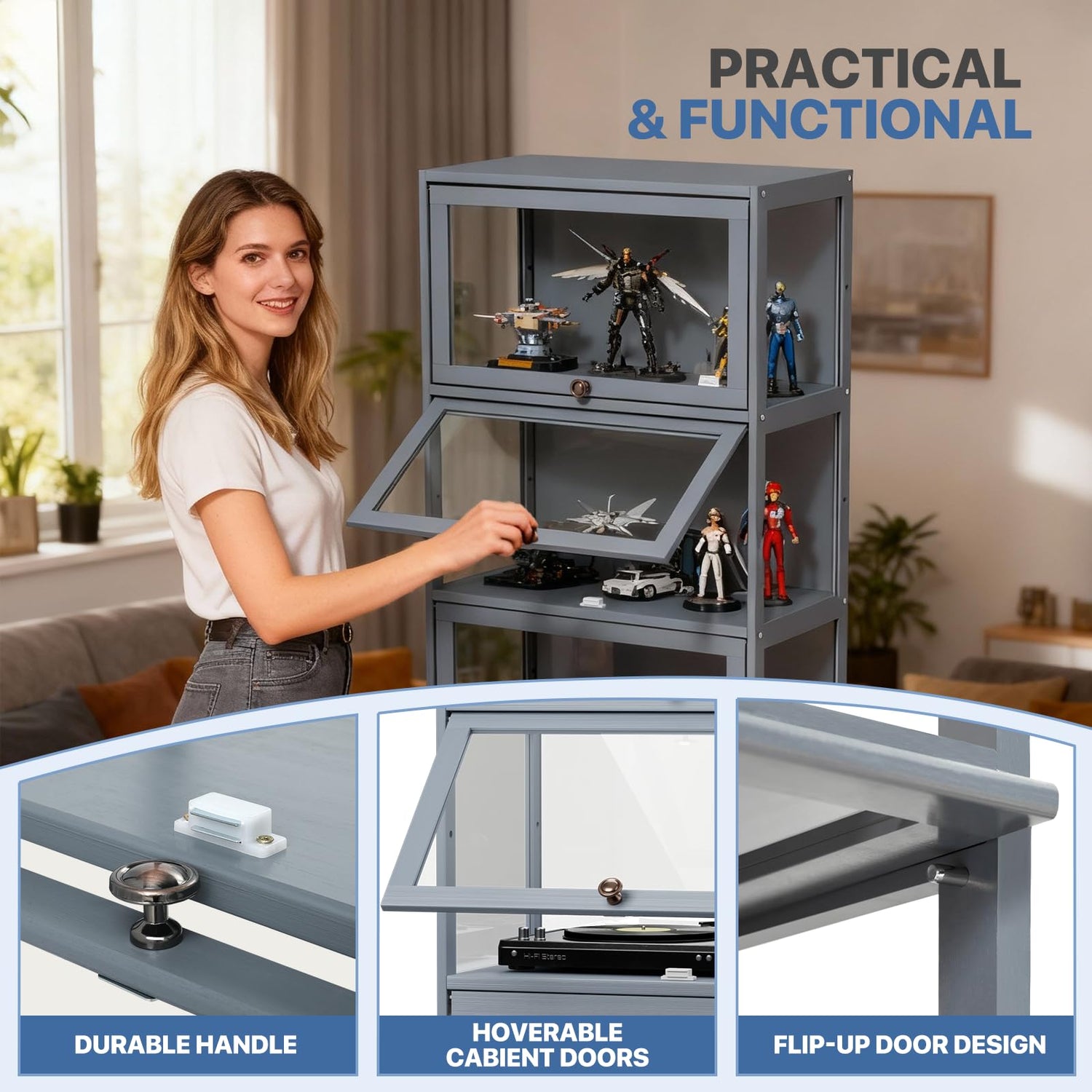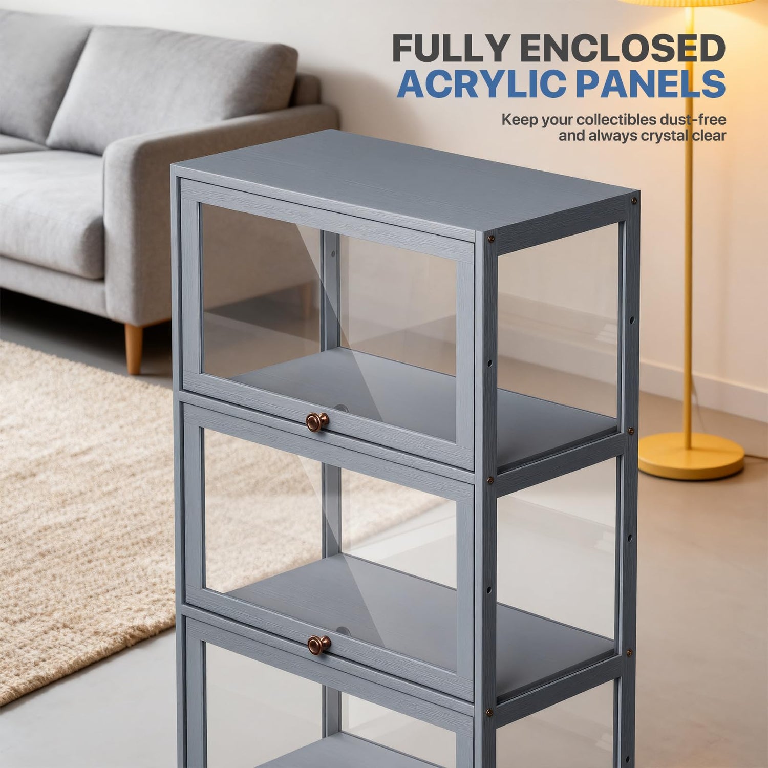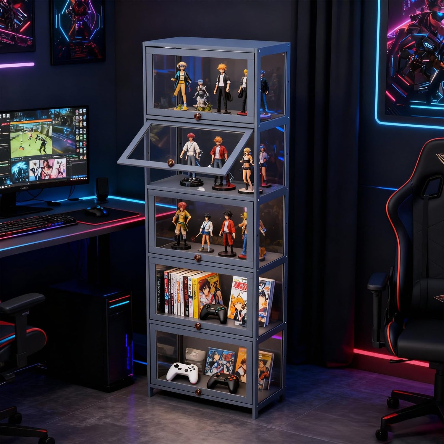 - Curio Cabinet with Acrylic Door: 5-shelf design is sturdy and stylish to display photos, books, action figures, wine and whiskey; flip-up design acrylic door is easy to open and close.