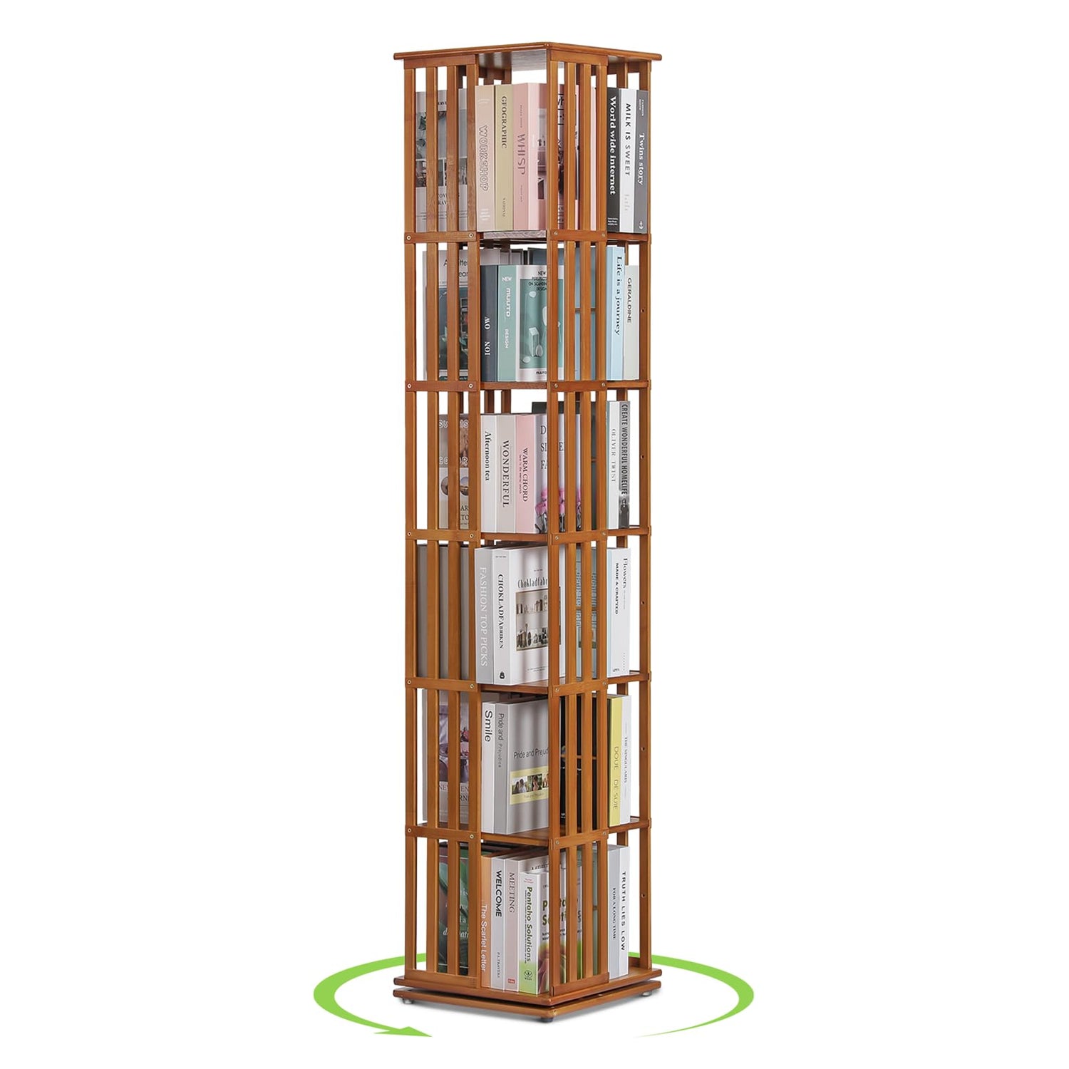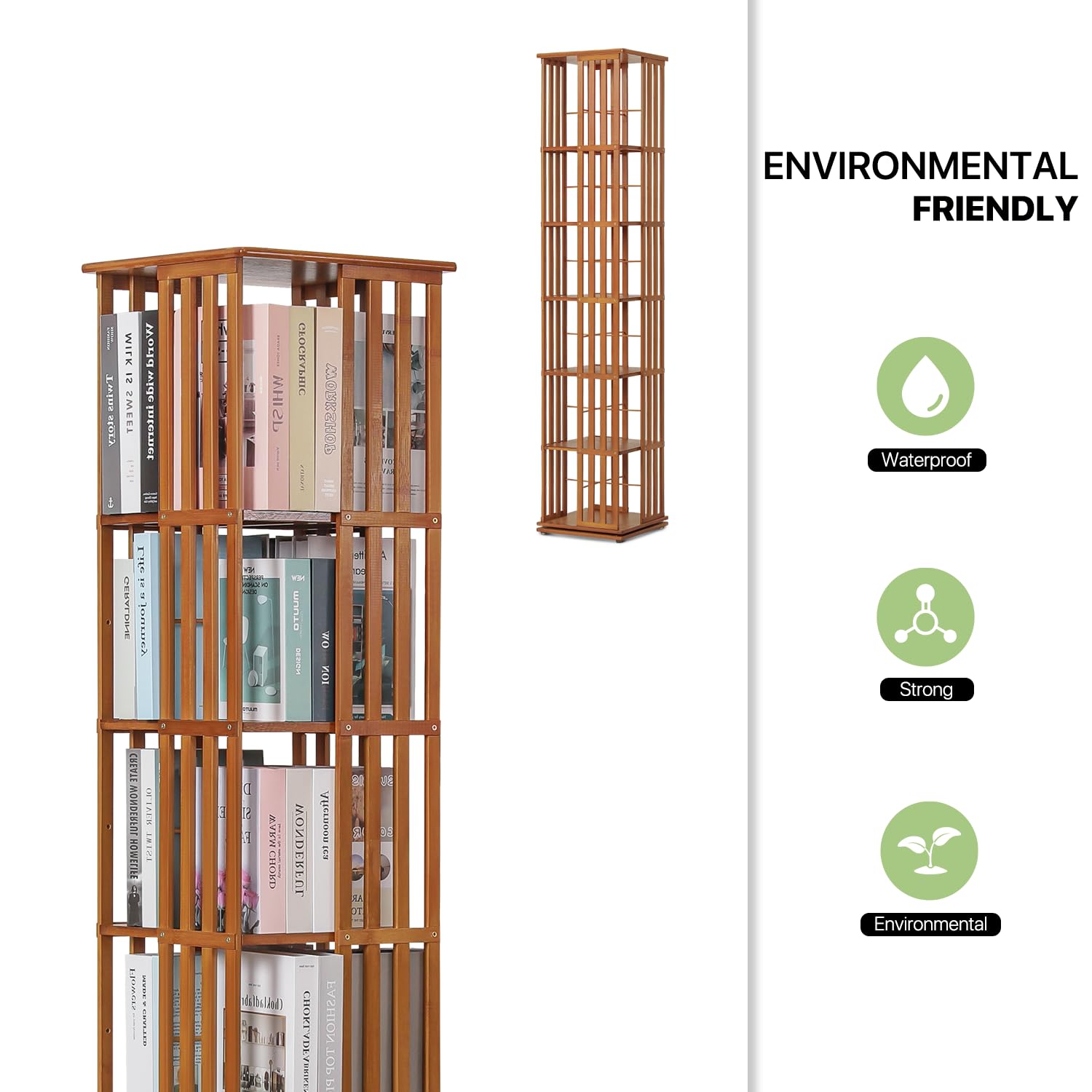 - Revolving Bookcase: Our unique revolving bookcase design allows you to access all sides of the bookshelf with ease. The four-side open bookcase offers plenty of storage space for books and other items. The compact design makes it perfect for smaller spaces where maximizing storage options is crucial.