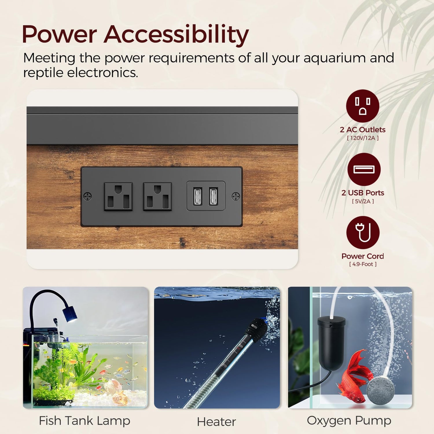 - Easy Power Solution: The fish tank stand, designed for 20-37 gallon tanks, includes 2 AC outlets and 2 USB ports, making it perfect for powering aquarium electronics such as lights and filters. Simplify aquarium maintenance with a handy socket