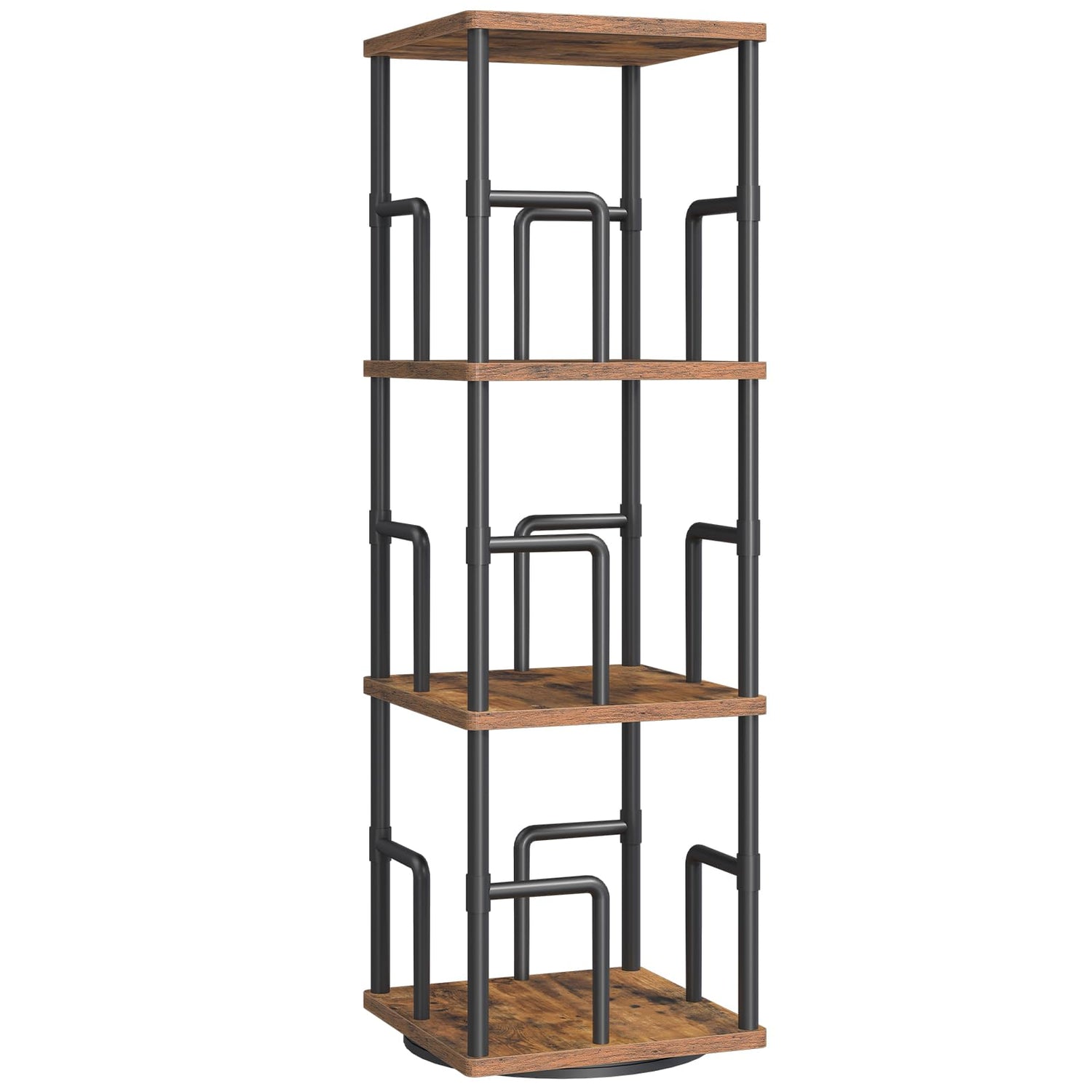 MAHANCRIS 3-Tier Rotating Bookshelf, Freestanding Corner Bookshelf, 360° Spinning Bookcase, Industrial Style Storage Rack with Rails, for Living Room, Bedroom, Study, Rustic Brown and Black BKHR1401